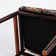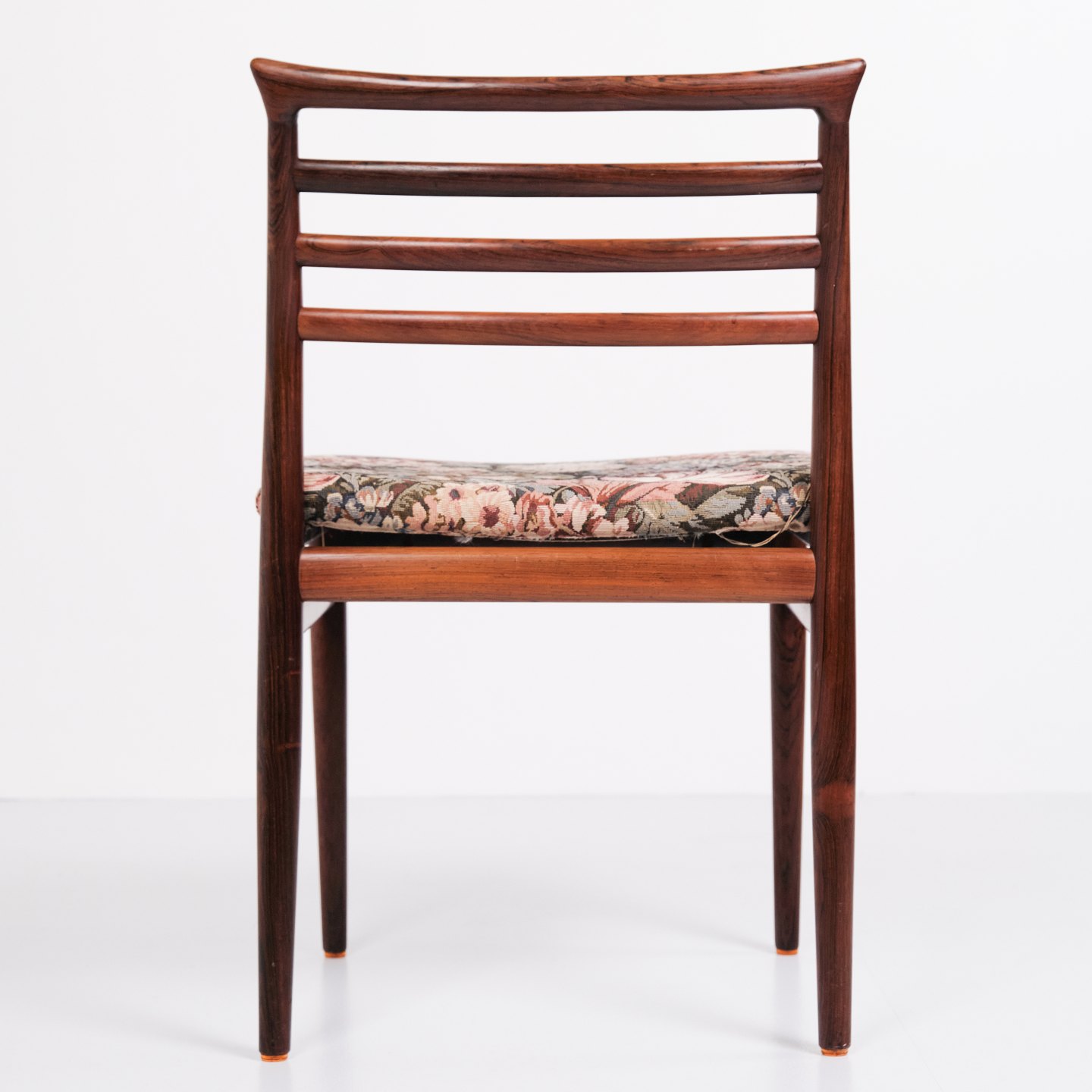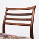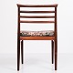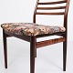 Beskrivelse: Sæt af seks Erling Torvits spisebordsstole fra 1960’erne. Palisander med blomstret sæde. Sorø Møbelfabrik.