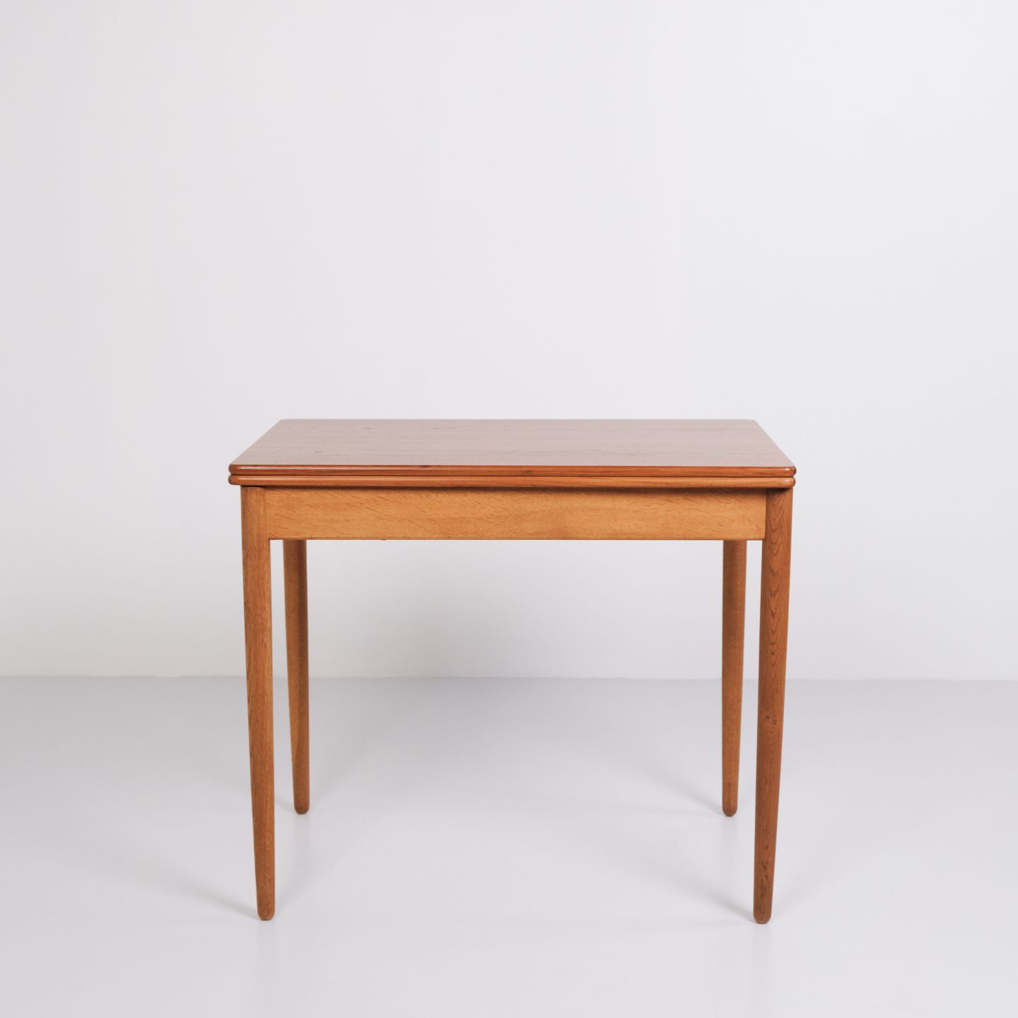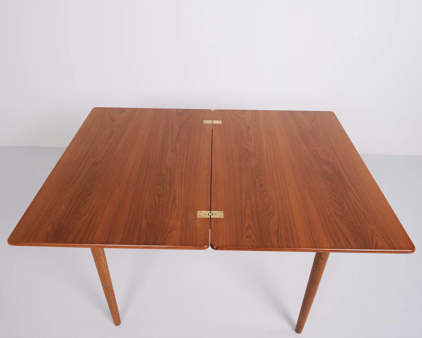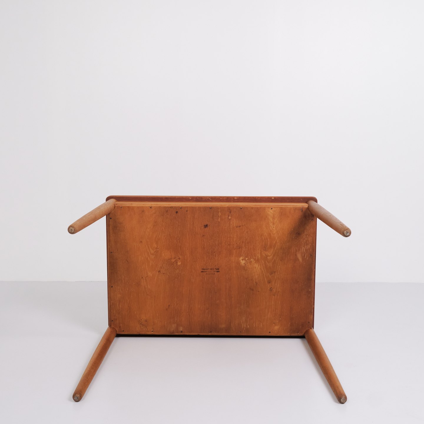 Beskrivelse: Hans J. Wegner spise/spillebord for Andreas Tuck. Teak og eg, 1960’erne. Indbygget opbevaring.