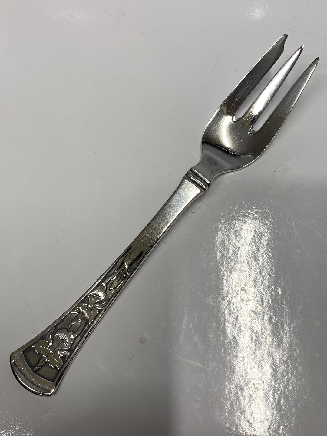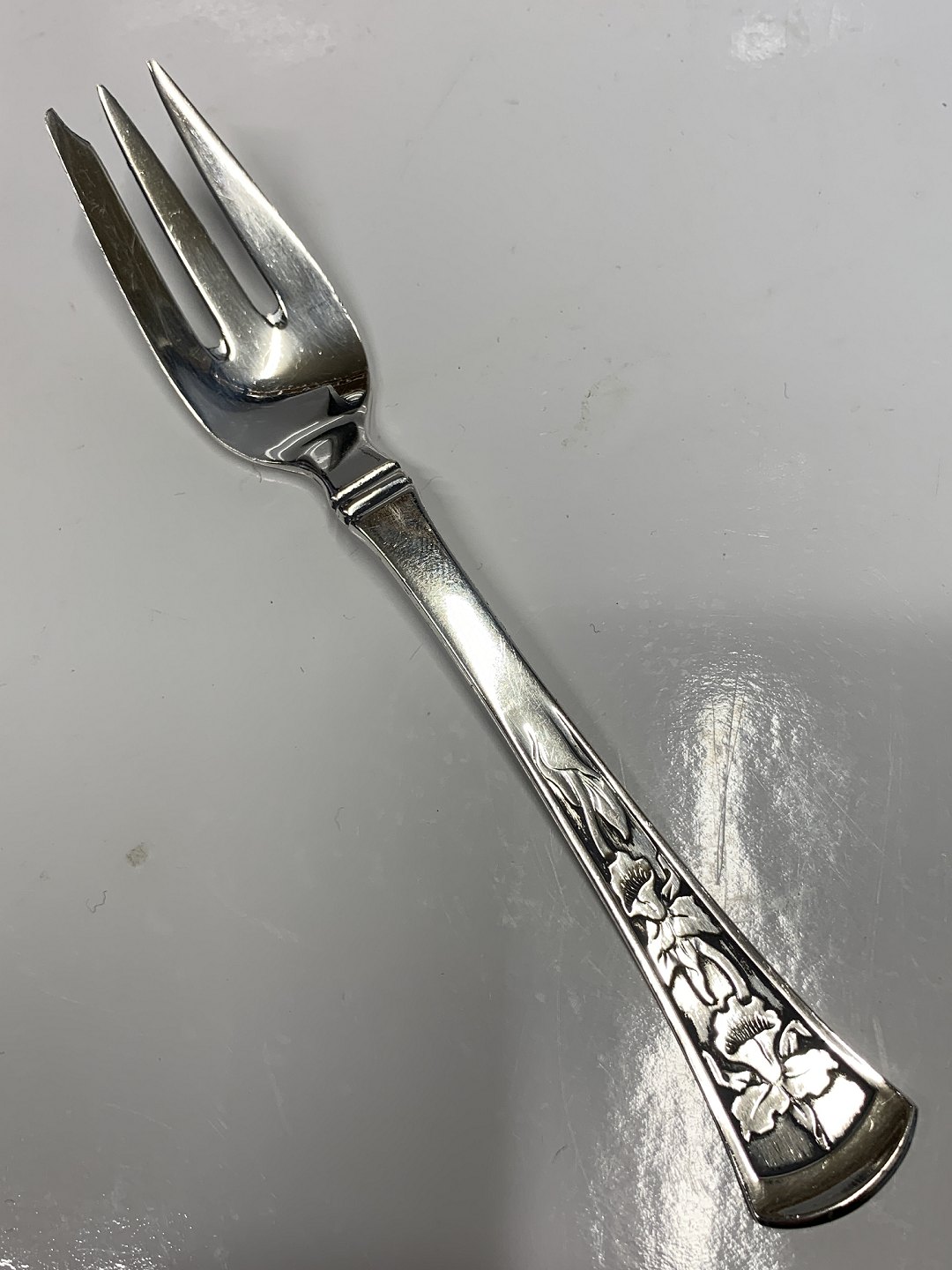 Beskrivelse: Orchide / Orkide Kagegaffel i Sølv