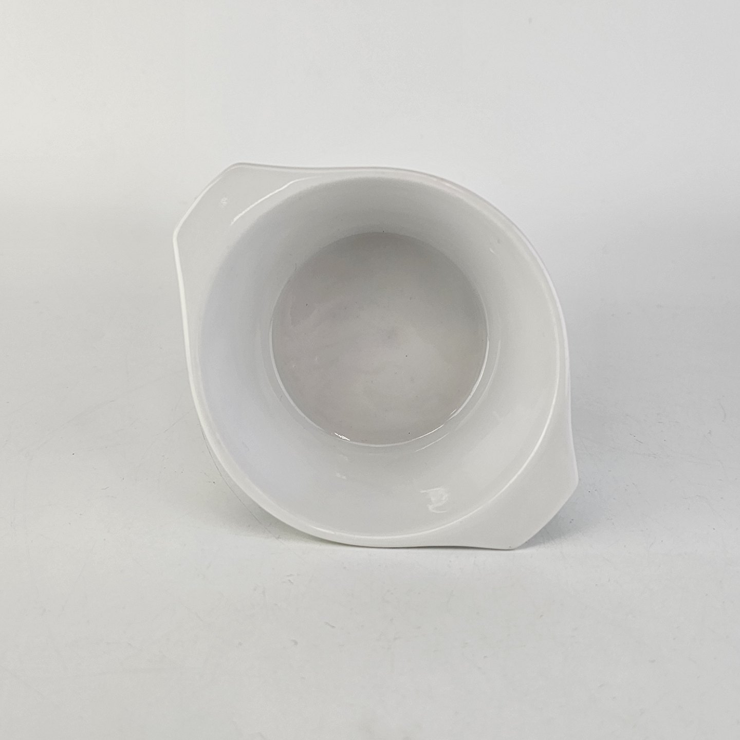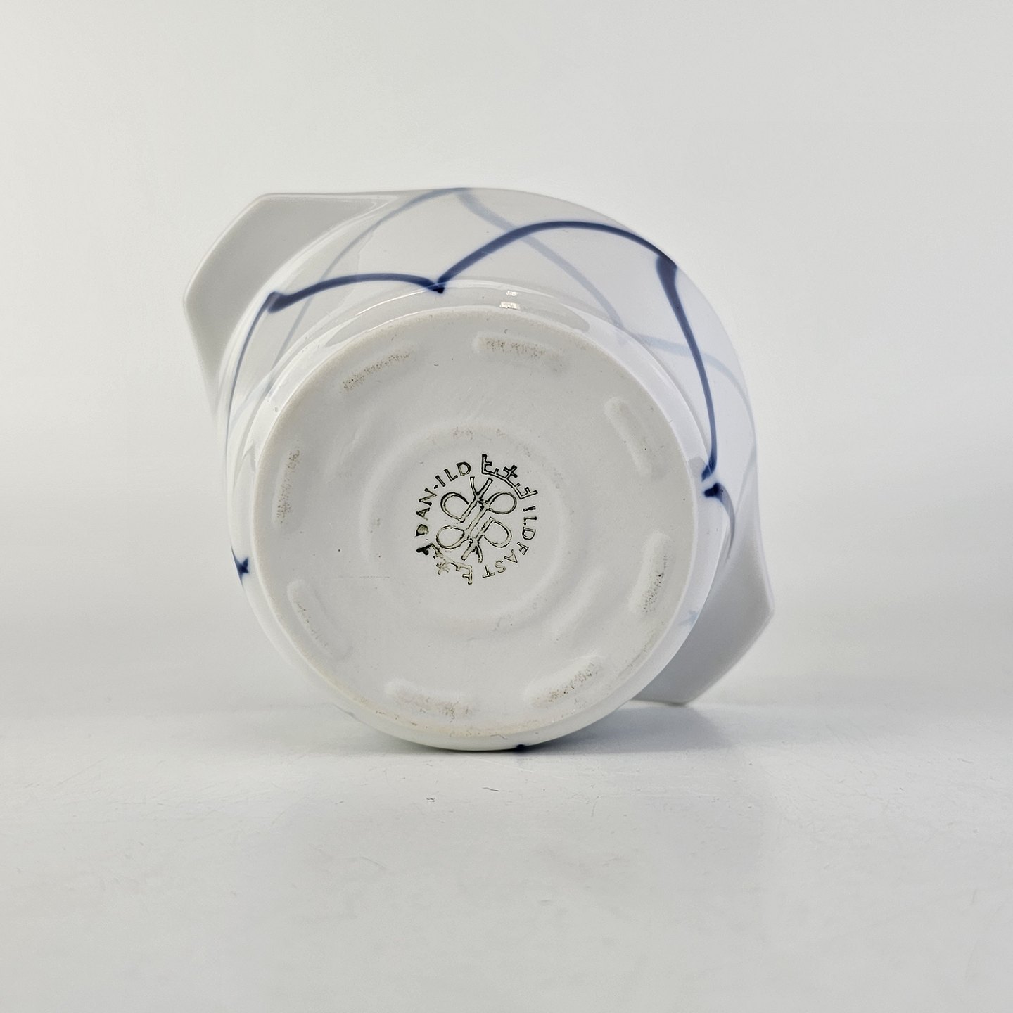 Blå Flamme er hvidt ildfast porcelæn dekoreret med blå striber, der ligner flammer.