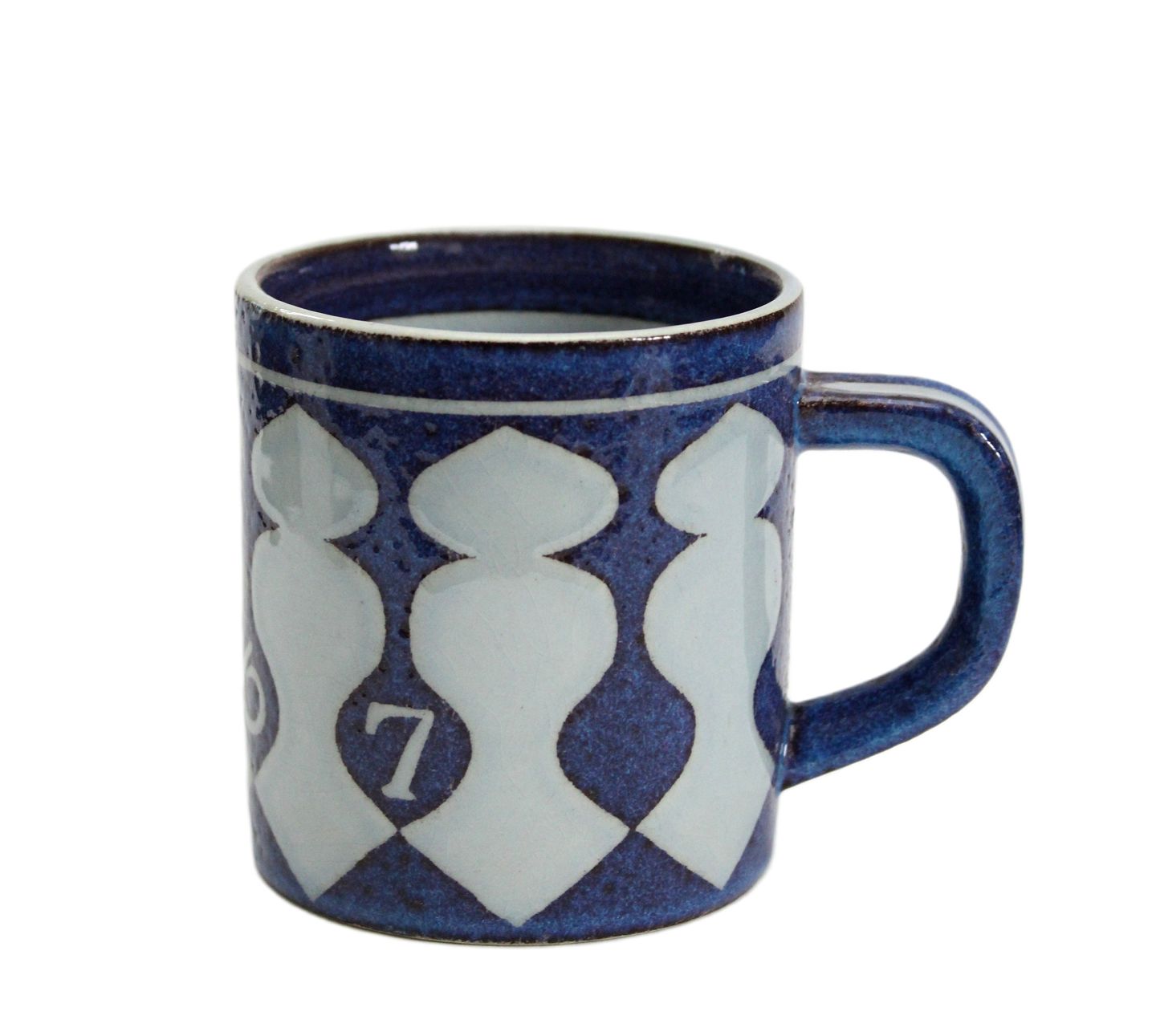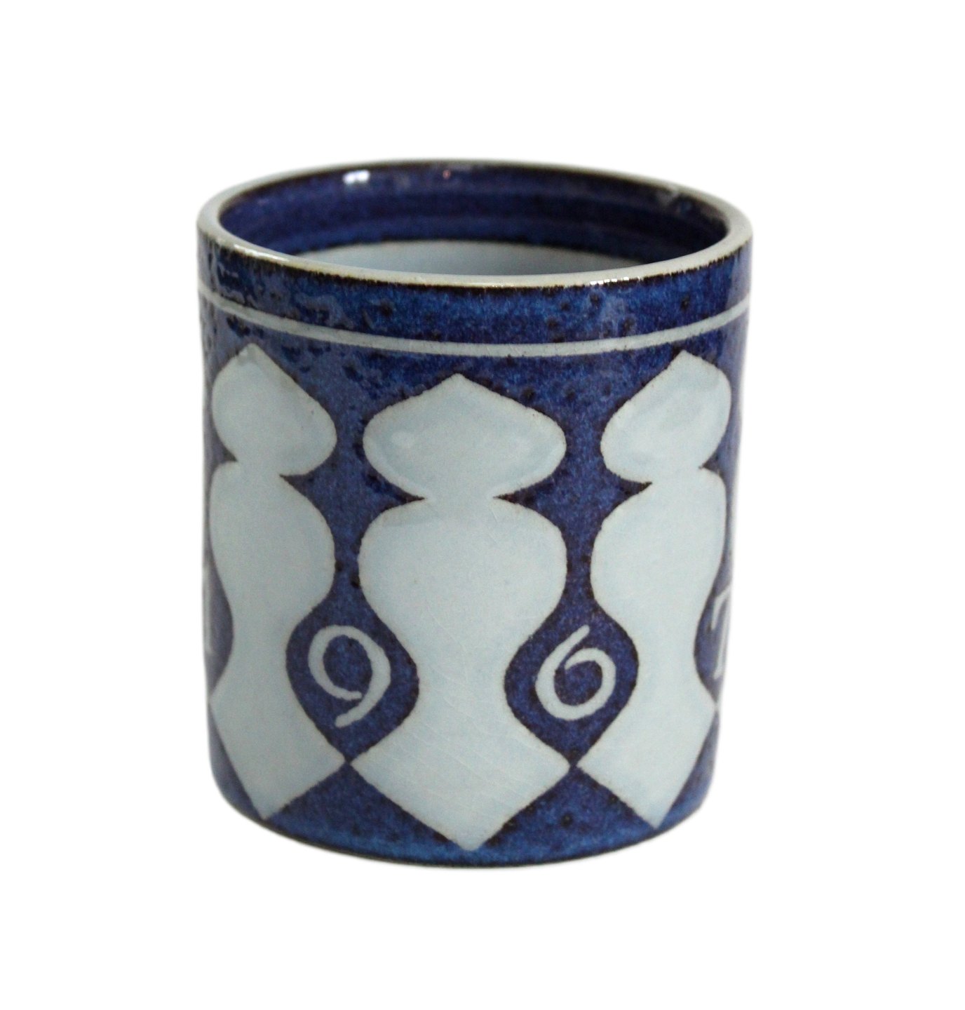 Beskrivelse: Aluminia, Lille årskrus i kunstfajance. Designer Nils Thorson. Dette er det første årskrus. Nr. 3495. Årskrus er produceret fra perioden 1967 til 2014, fra 1968 er det Royal Copenhagen. Højde 7,5 cm. Diameter 6,8 cm. Lettere overfladekrakelering. Pris: 700 kr. stk. Lager: 1