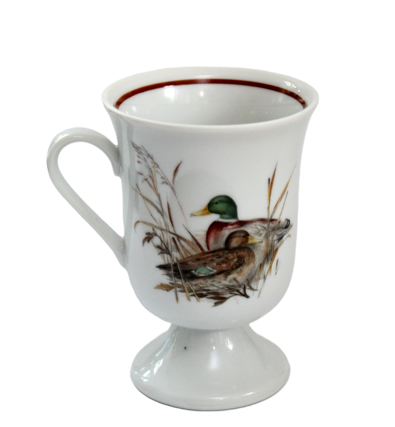 Beskrivelse: Jagtstellet designet af Mads Stage for Imerco. Irish Coffee krus på fod. Gråand. Højde 11 cm. Diameter 8 cm. Pris: SOLGT