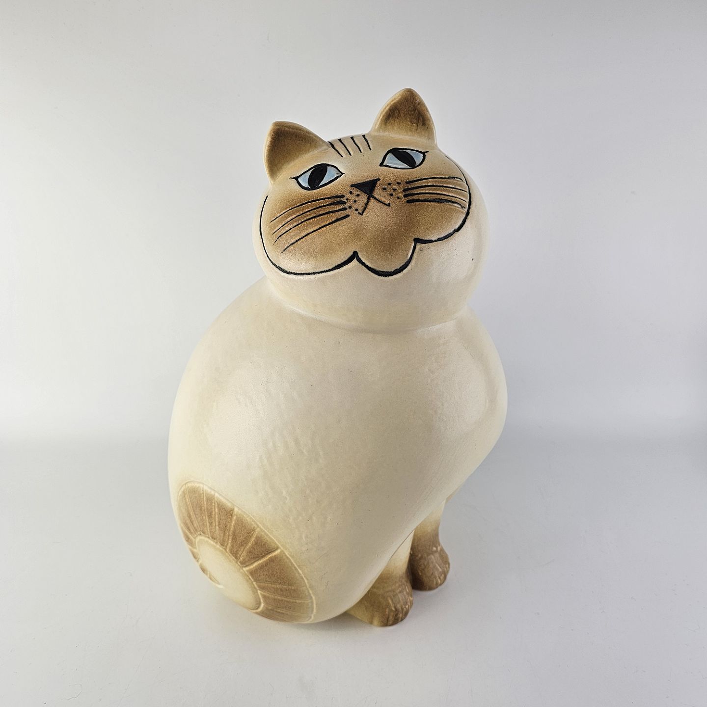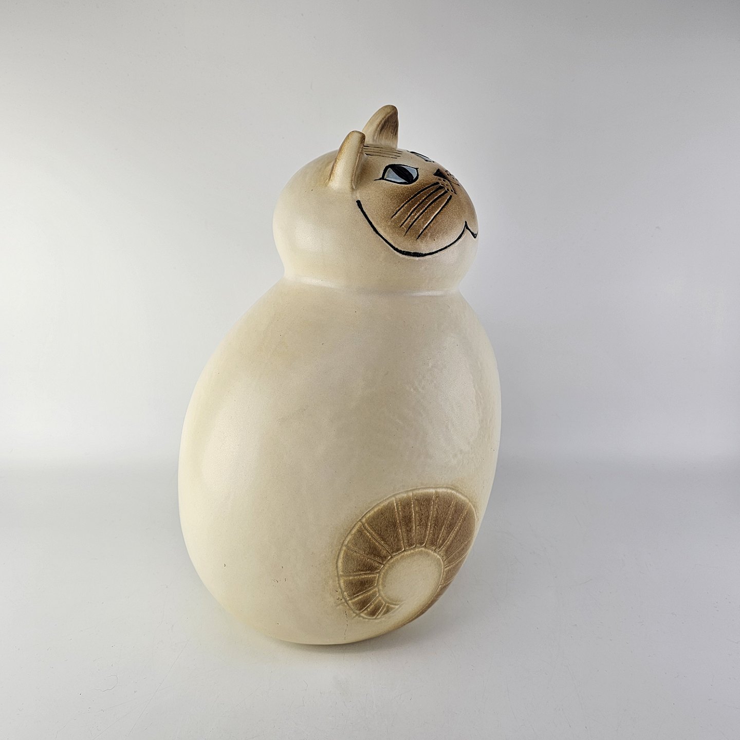 Beskrivelse: Figur i stentøj med motiv af en lys kat af modellen Mia fra år 2010