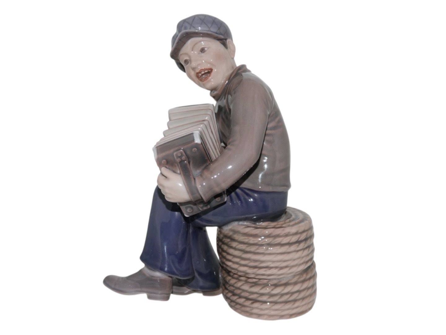 Beskrivelse: Stor Dahl Jensen figur, harmonikaspiller.