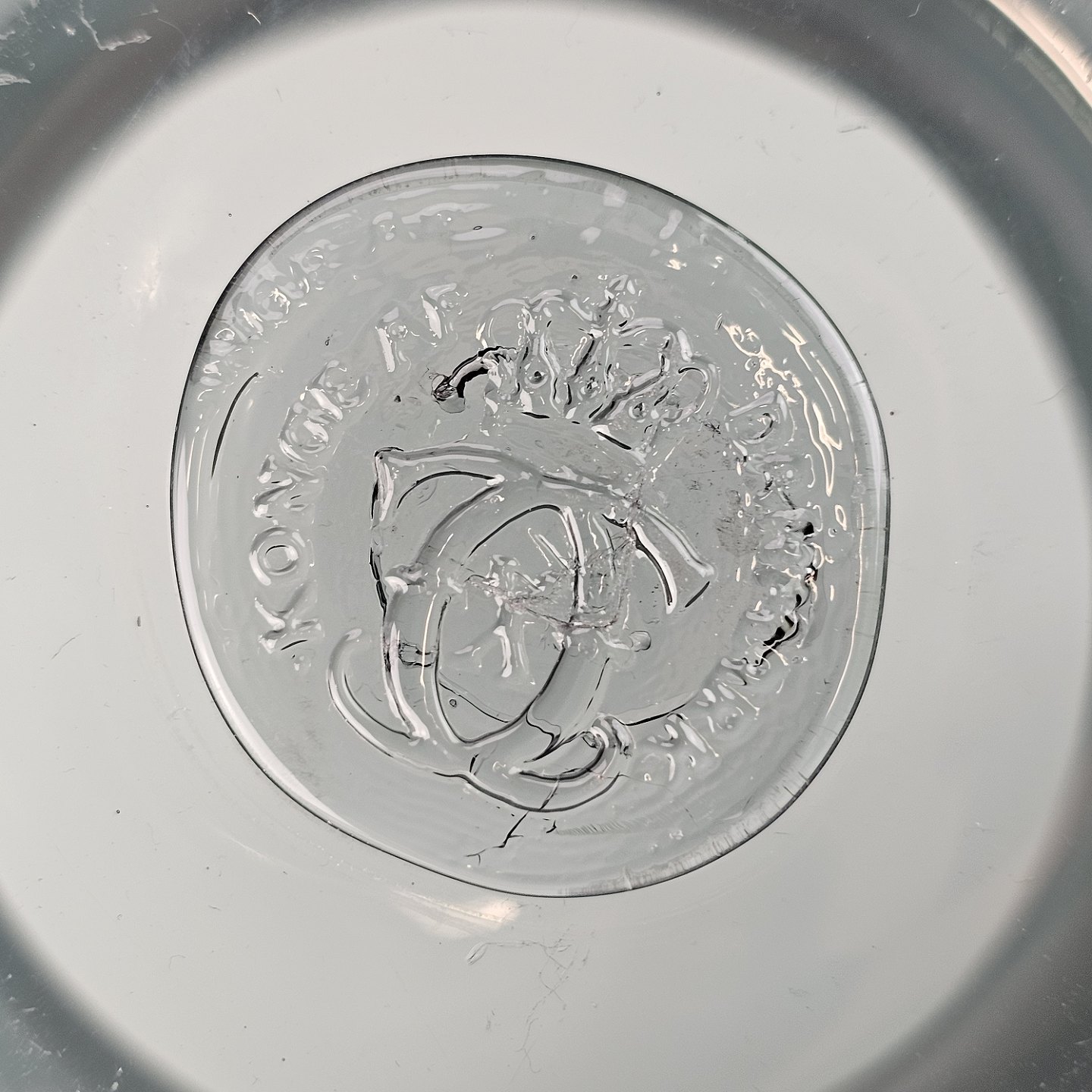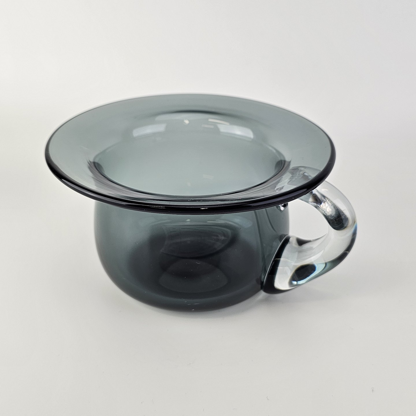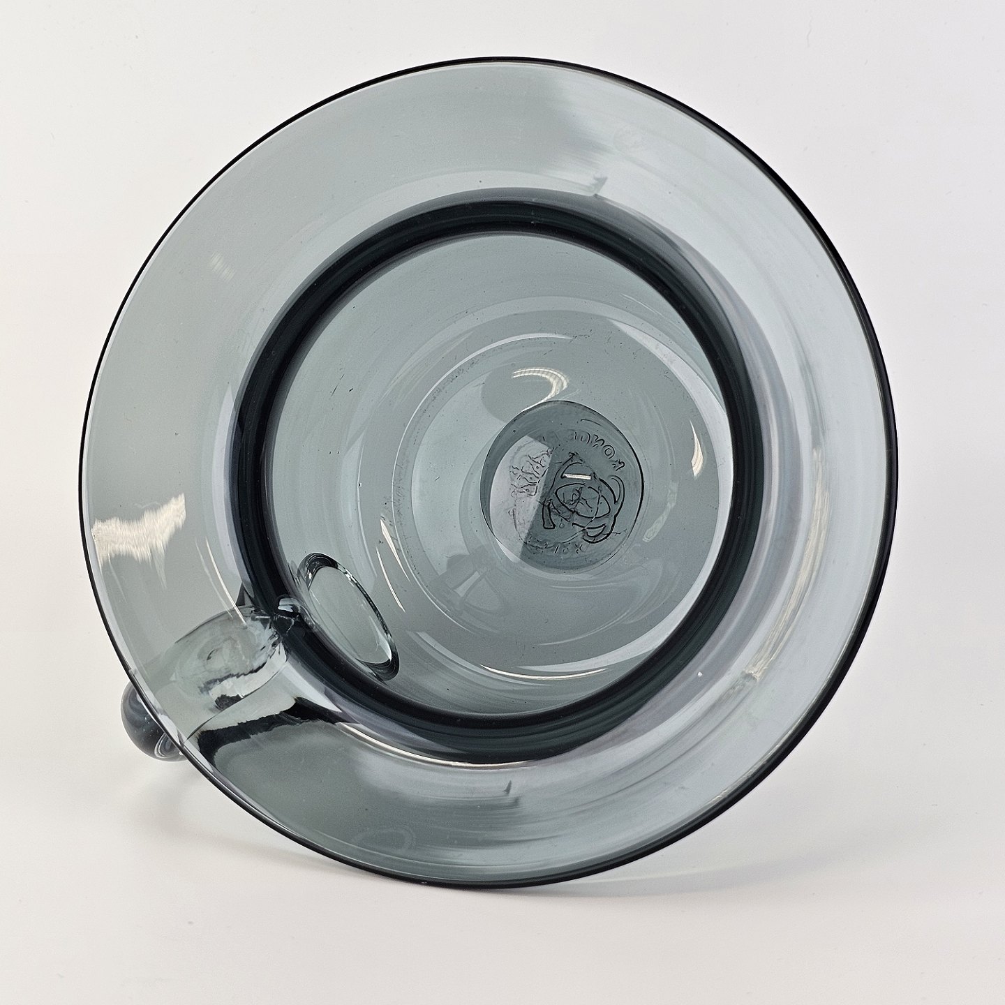 Beskrivelse: Natpotte i røgfarvet glas med hank