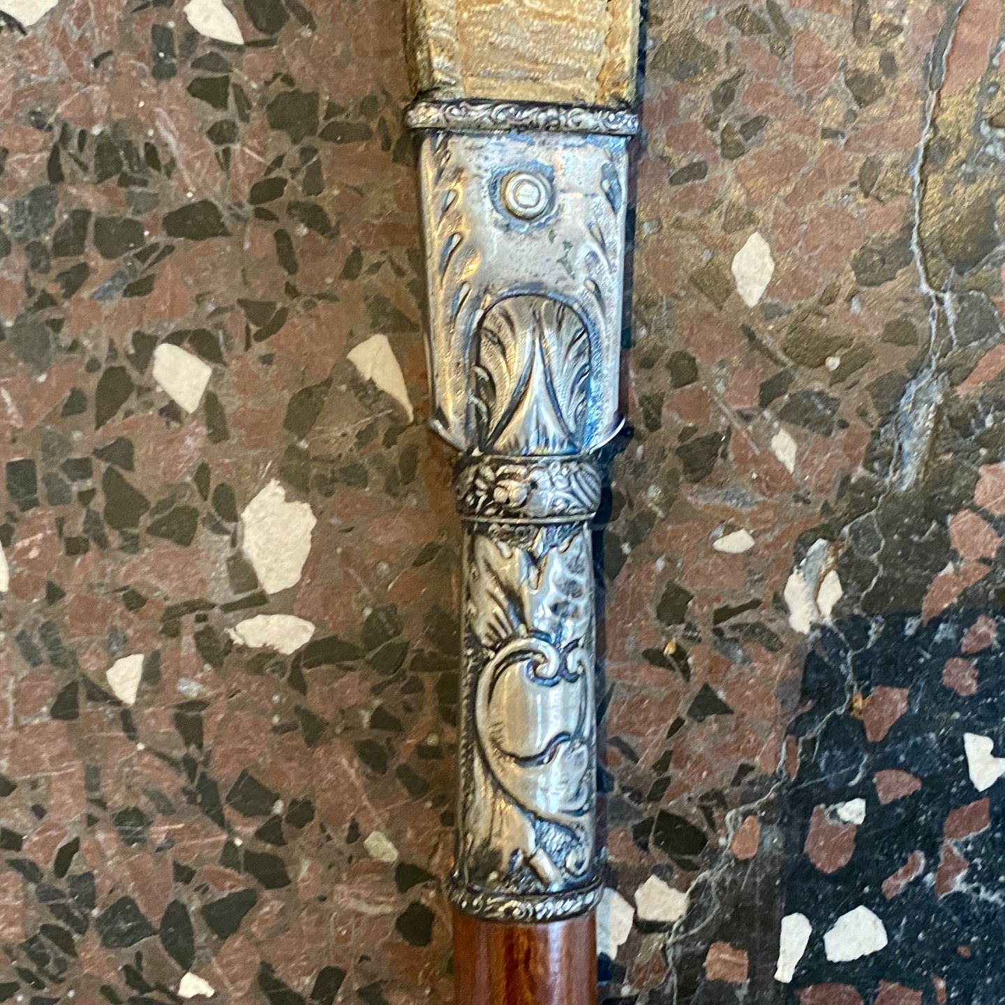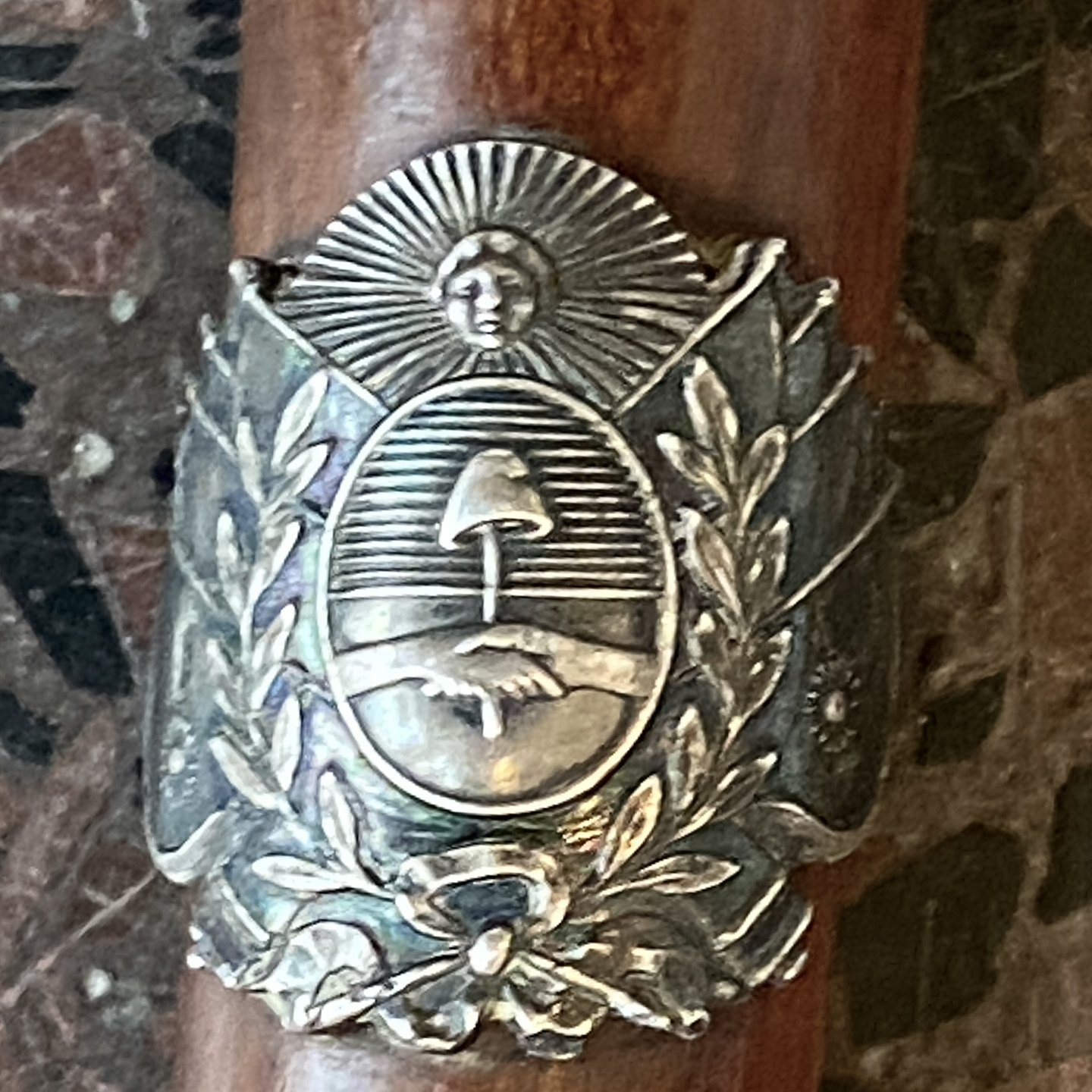 Description: Argentine whip with silver mounting. Stamped 800s and mark from Argentina. Dimensions: Total 88 cm. Dimensions: Shaft 38 cm.