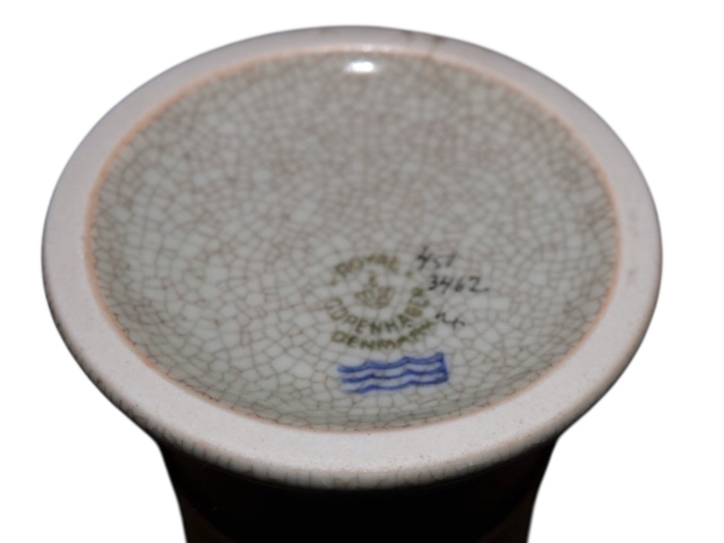 Beskrivelse: Royal Copenhagen Craquele (Krakele), vase med grøn dekoration.