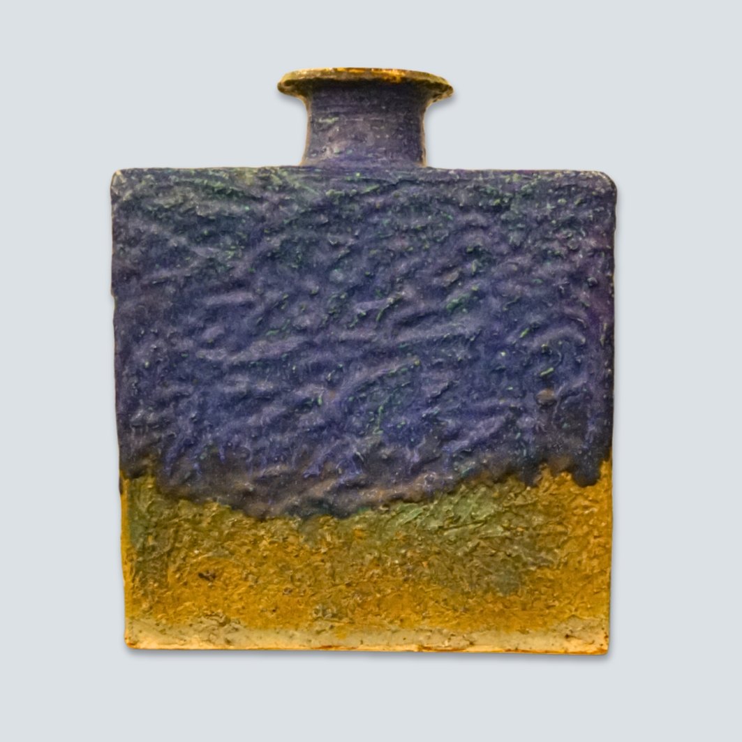 Beskrivelse: Annikki Hovisaari for Arabia; Firkantet keramik vase med blå glasur. Fra 1970érne.