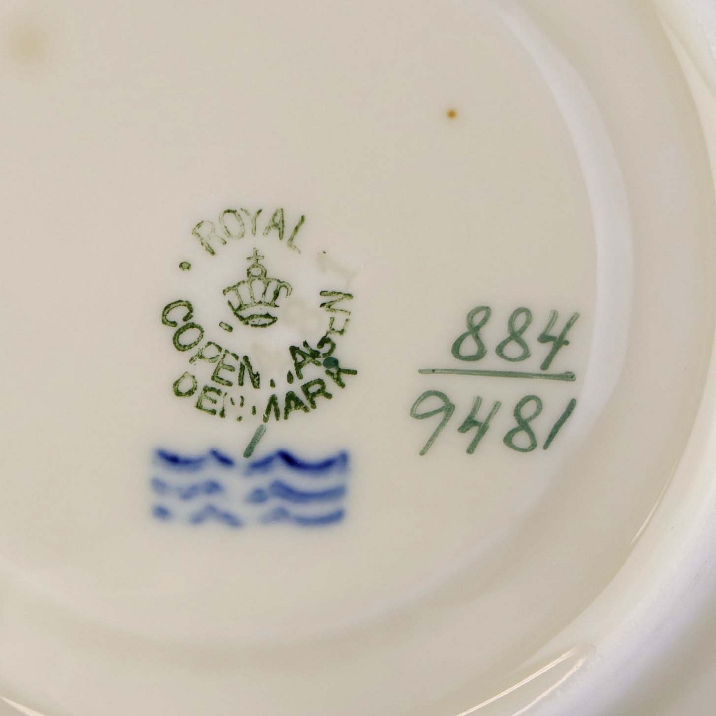 Beskrivelse: Kop med underkop i kongelig porcelæn fra stellet Hjertegræs. Nr. 884/9481