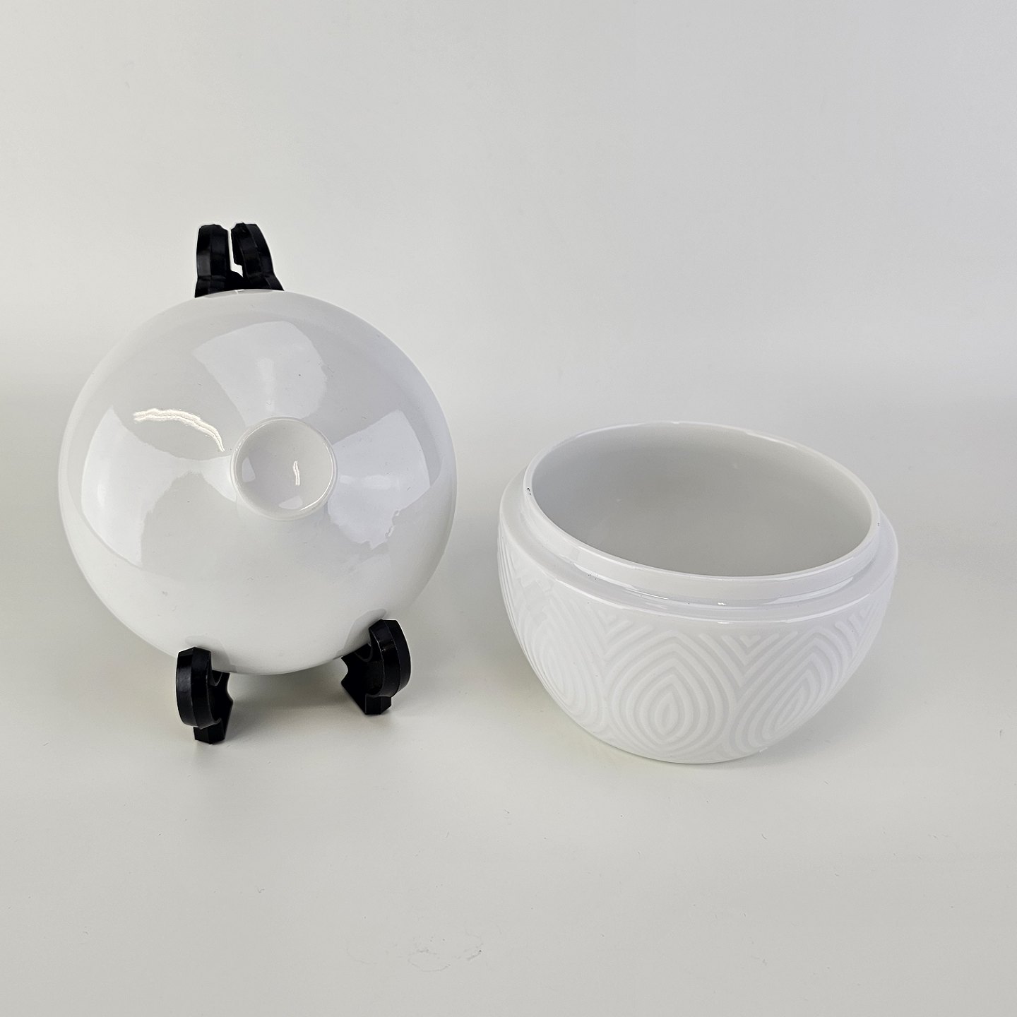 Beskrivelse: Sukkerskål fra stellet Salto i hvidt porcelæn