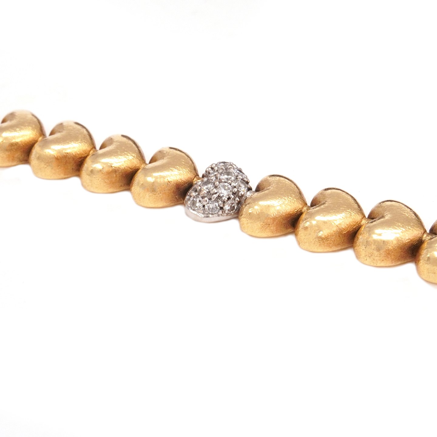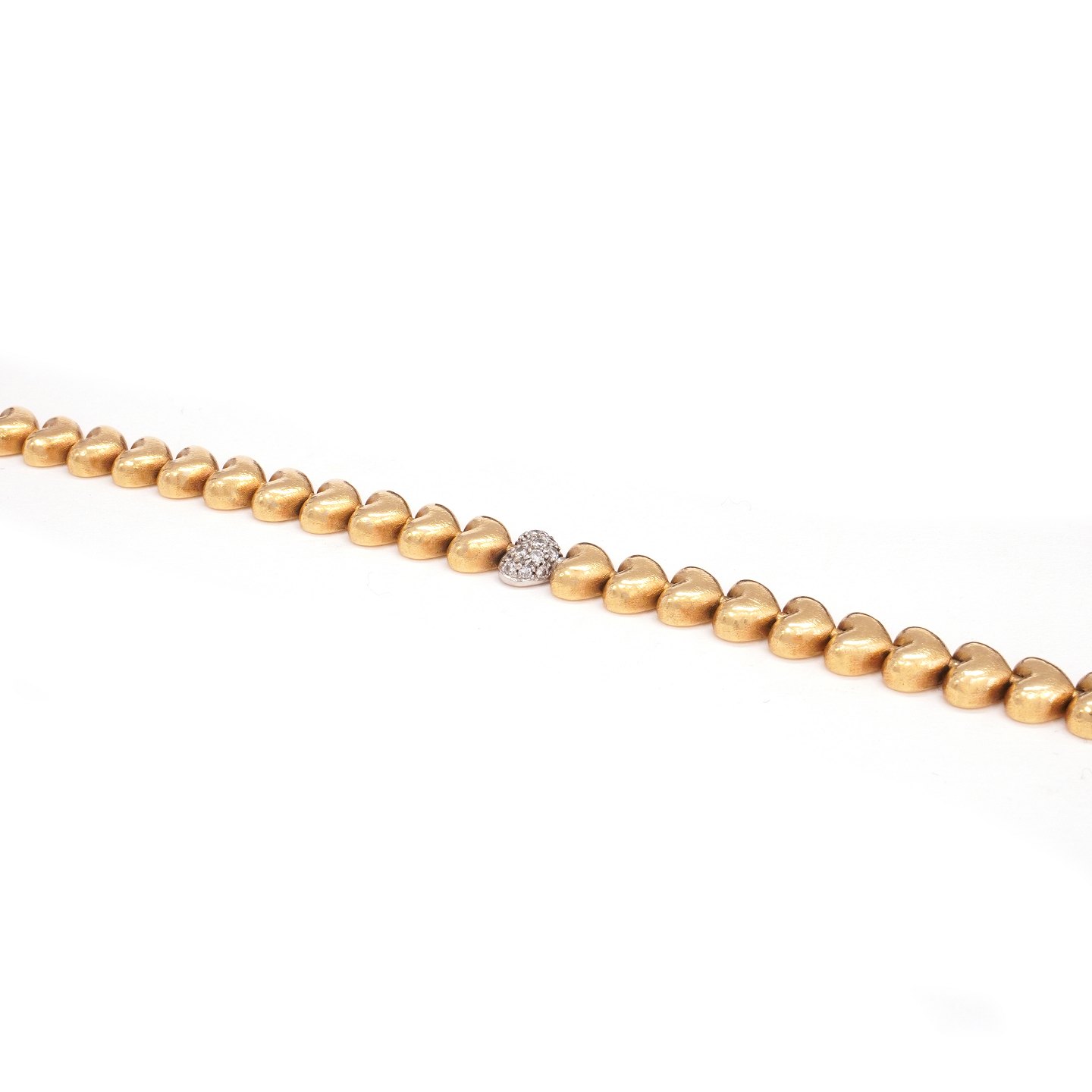 Ole Lynggaard kraftig Heart hjertearmlænke i 14kt guld. Et led prydet med diamanter. Ledstr. 7x8mm. L: 19cm