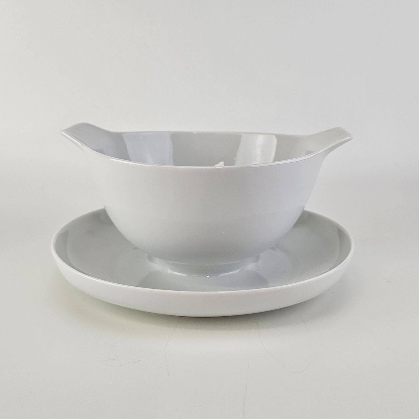 Beskrivelse: Sovsekande i porcelæn fra stellet Hvid Koppel