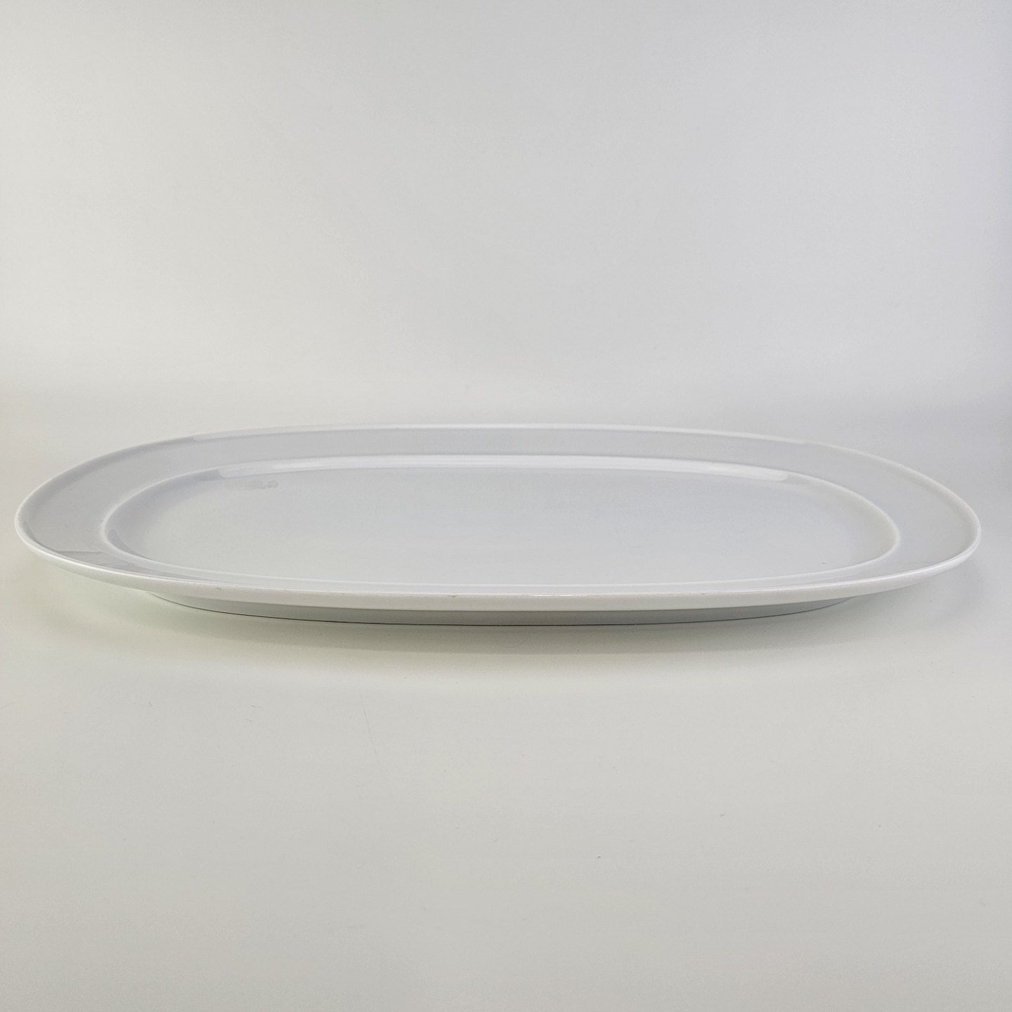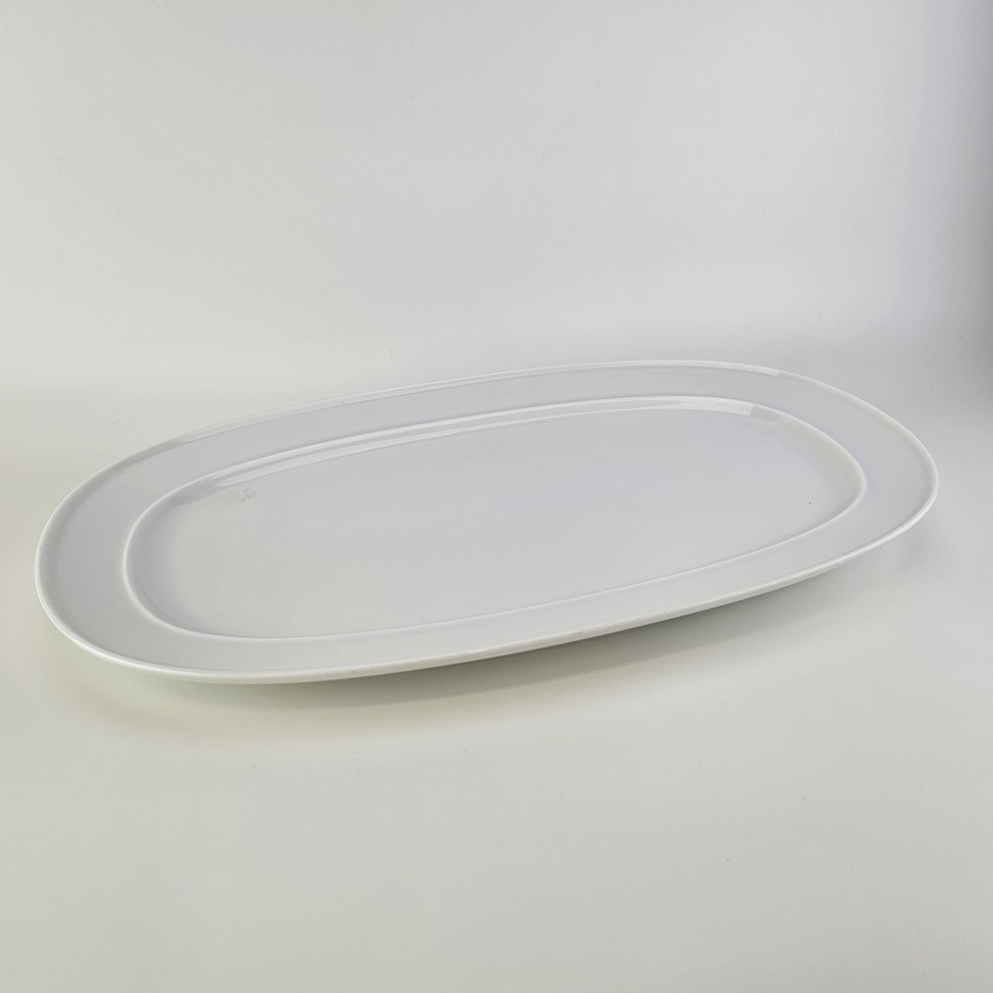 Beskrivelse: Rektangulært fad med runde hjørner i porcelæn fra stellet Hvid Koppel