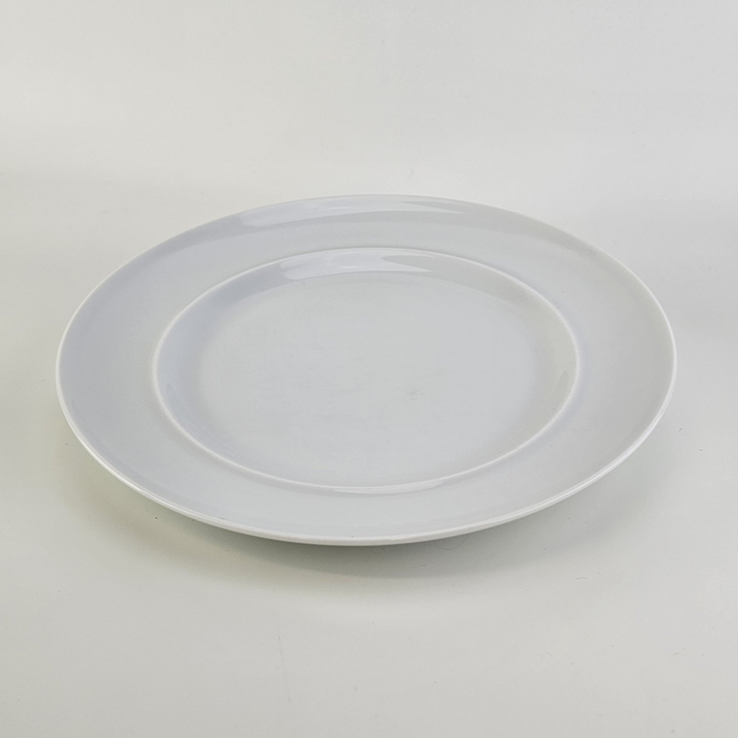 Beskrivelse: Flad frokosttallerken i porcelæn fra stellet Hvid Koppel