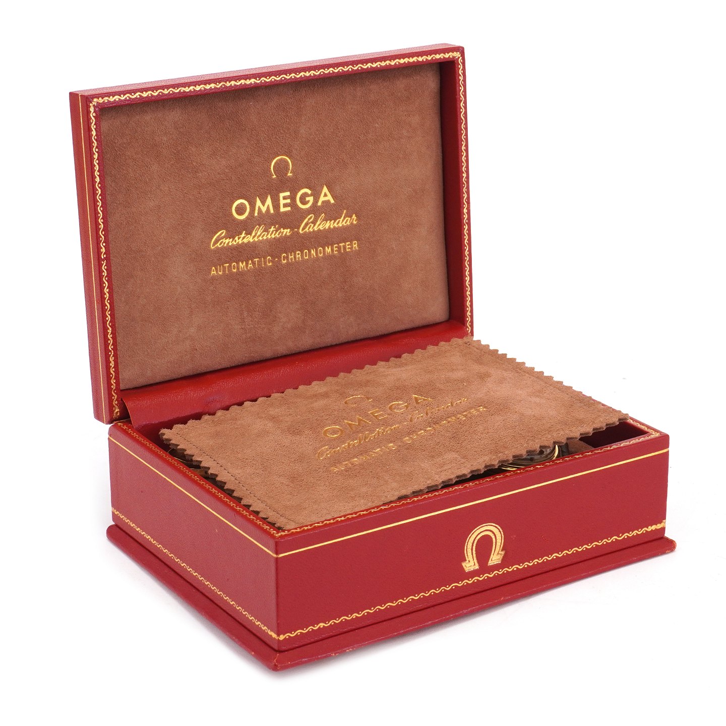 Description: Omega Constellation Pie Pan i 18kt gold with box and papers ref. 14382 82SC sold 01.06 1961