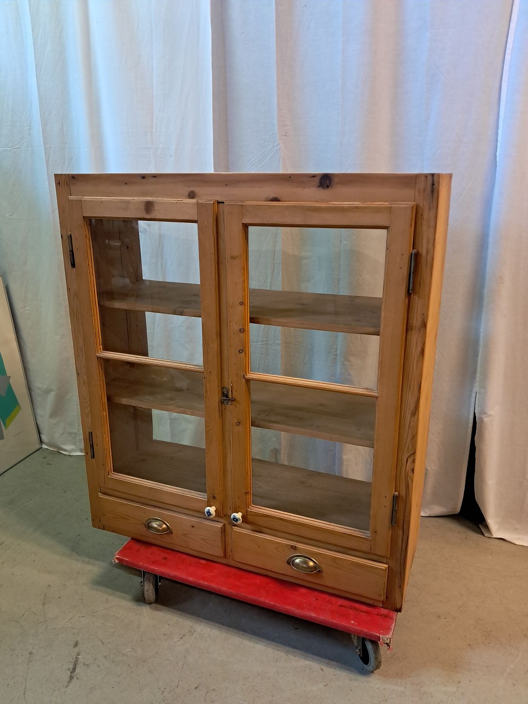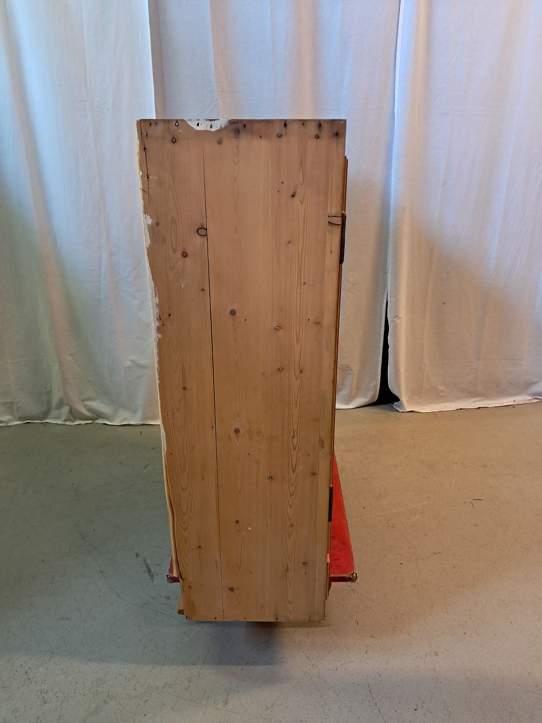 Beskrivelse: Gammelt køkkenskab i massivt fyrretræ, fra 1920erne.
