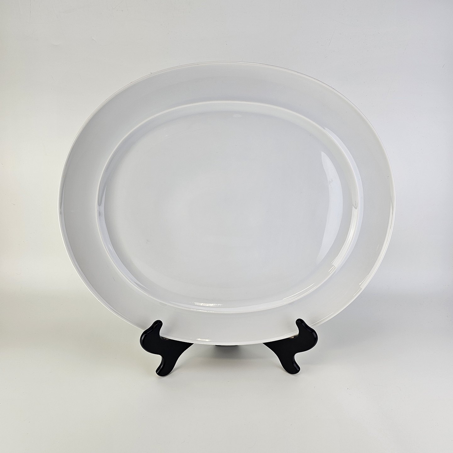 Beskrivelse: Ovalt fad i porcelæn fra stellet Hvid Koppel