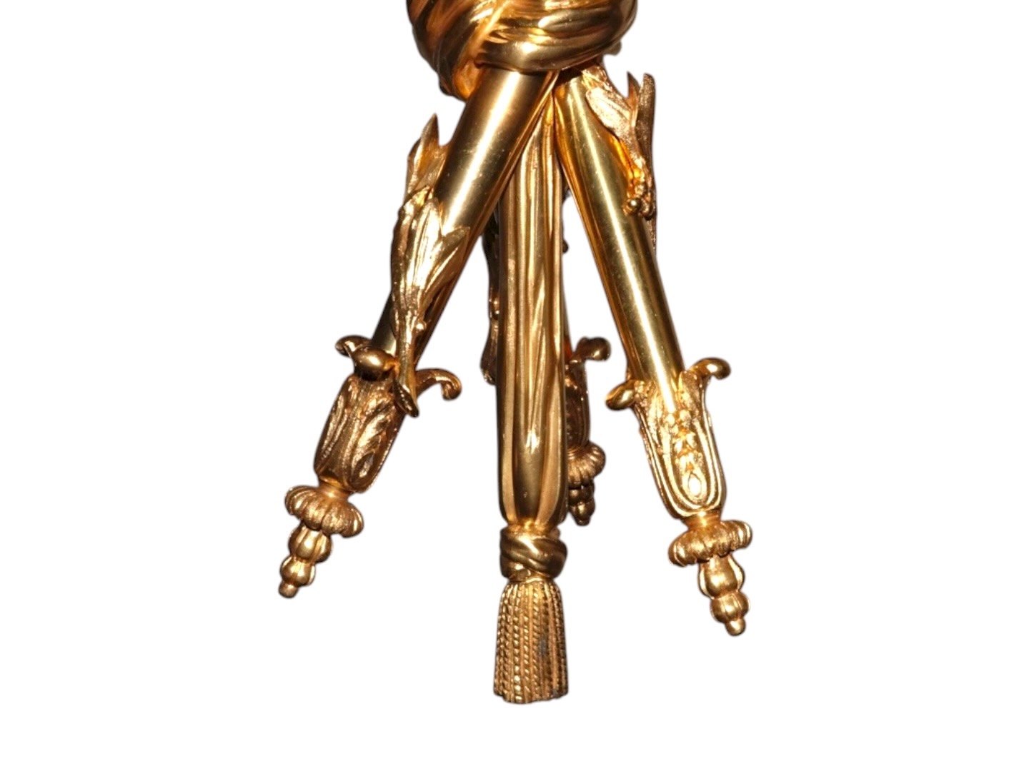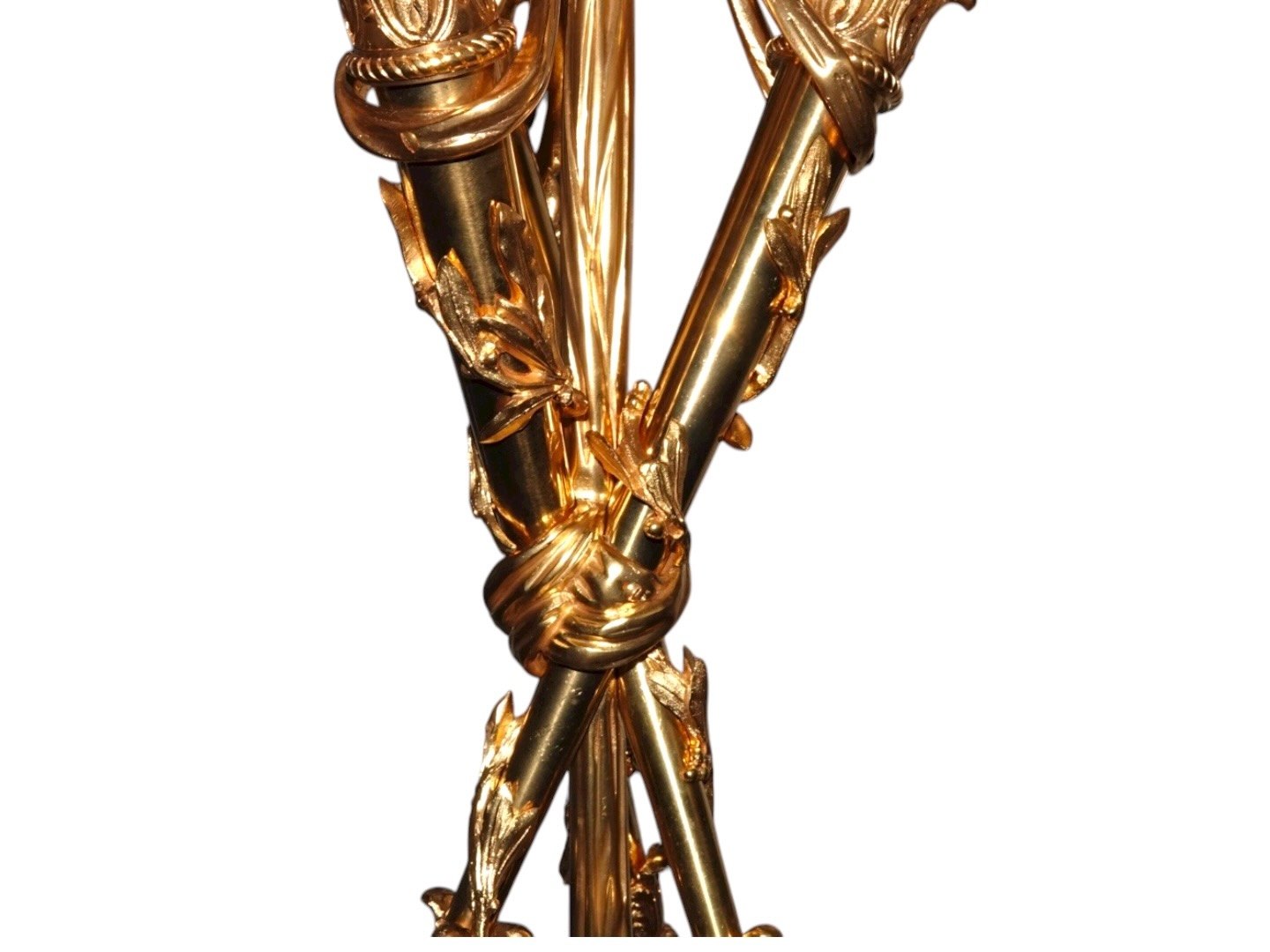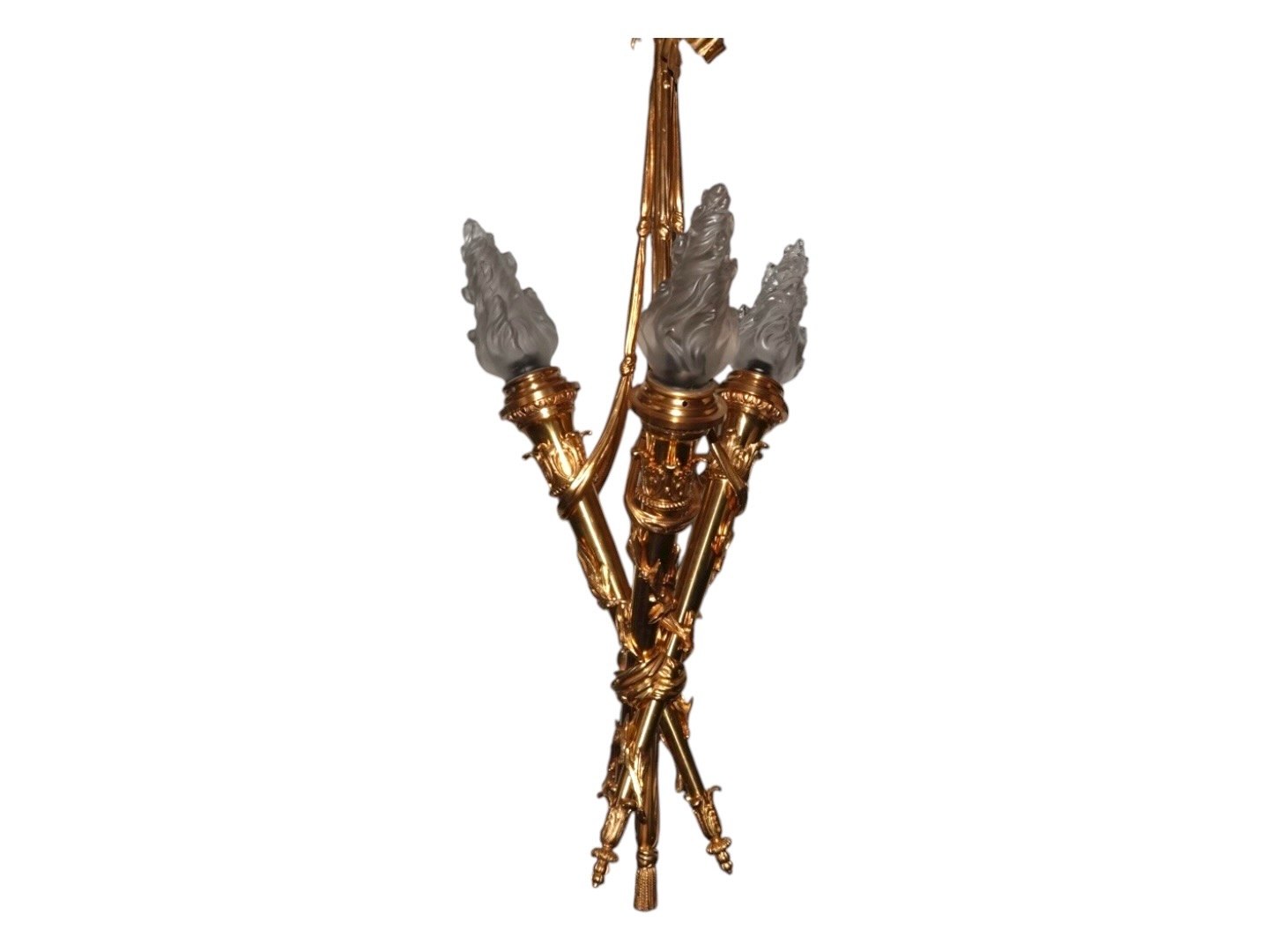 Smal Empire Lysekrone i massiv forgyldt bronze med tre fakler