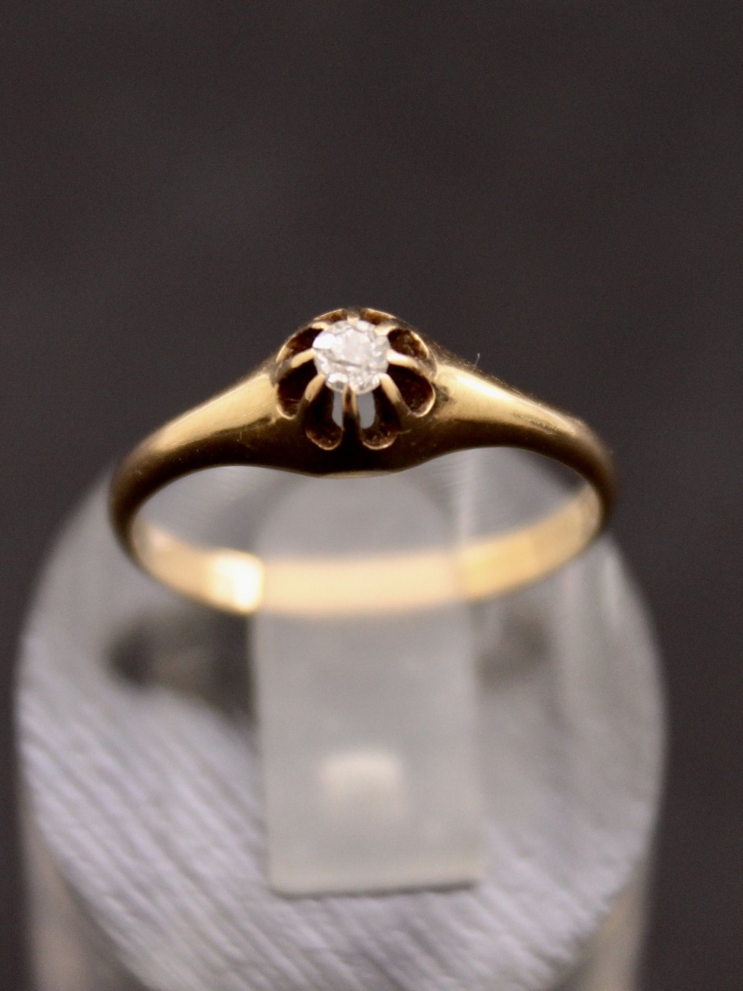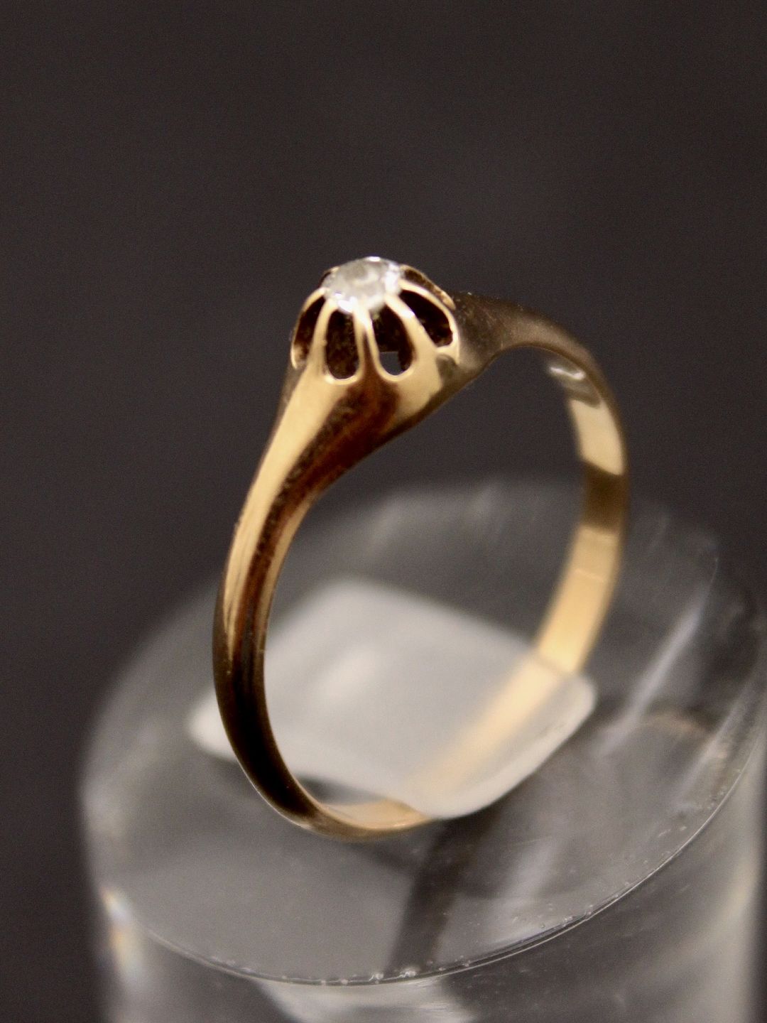 Beskrivelse: 14 karat guld ring størrelse 53 med diamant stemplet 585 HE for guldsmed H Eilersen København emne nr. 624686