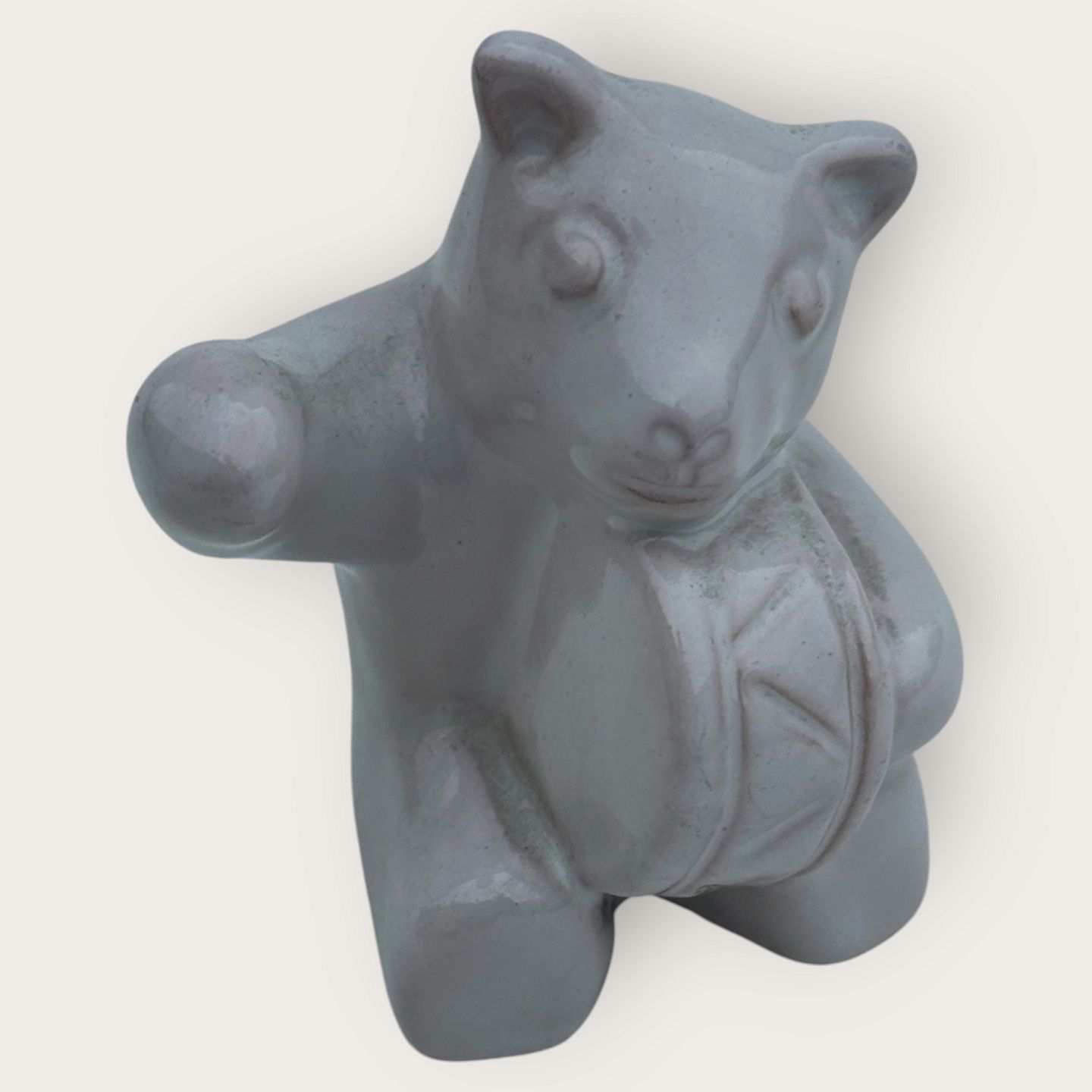 Description: Bornholm pottery, Hjorth, Bear orchestra, Drum, bear with white glaze, approx. 6.5x5.5cm *Good condition*