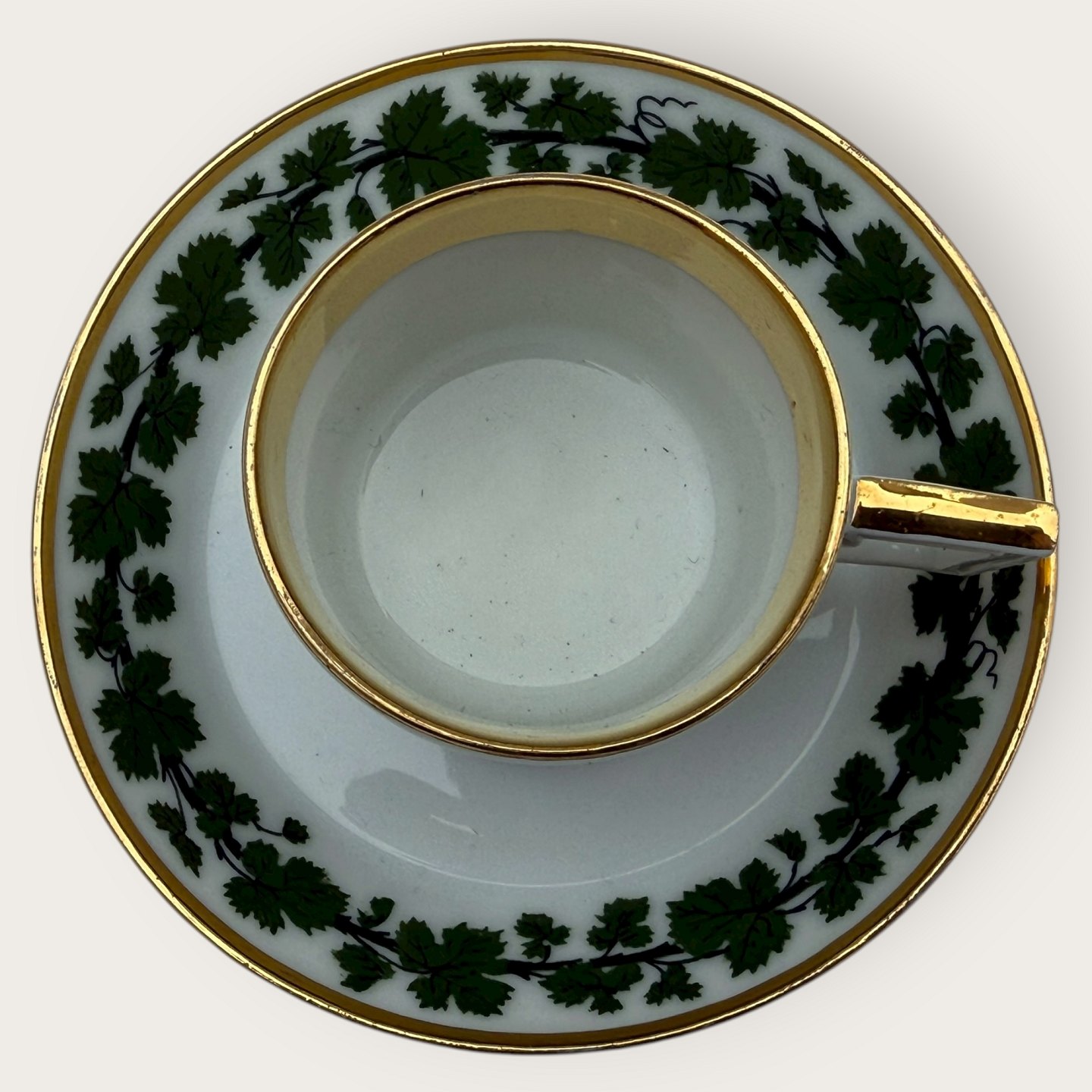 Beskrivelse: Meissen, Lille kaffekop med vinløv og guldkanter, højde 5cm, diameter 5cm *fin stand*