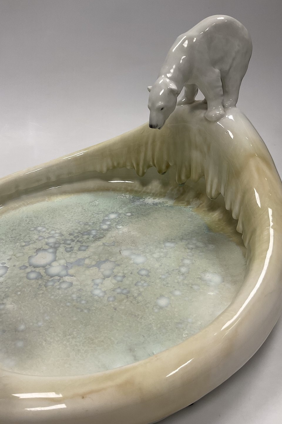 Large Royal Copenhagen Art Nouveau Crystalline Glaze Tray with polar Bears. Designed by Arnold Krog and glaze by Søren Berg "Northpole" from January 1925