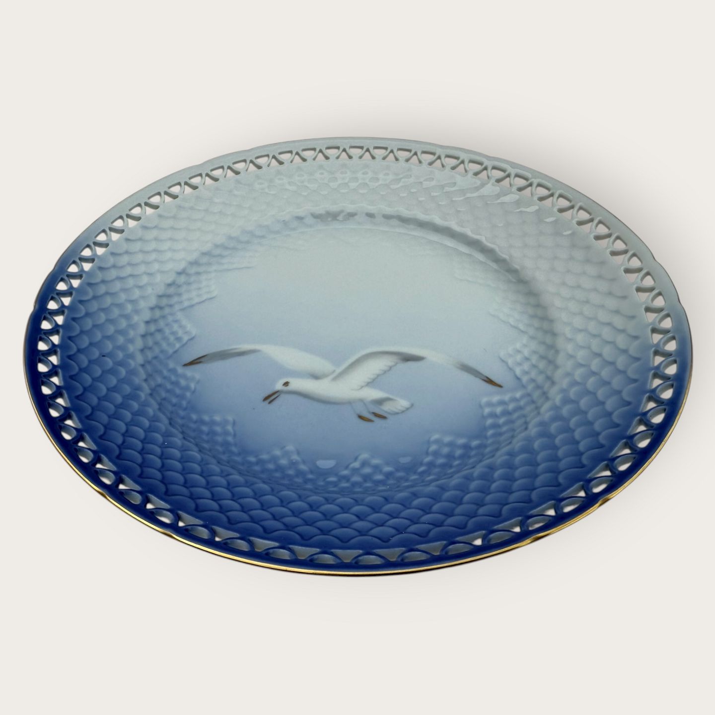Beskrivelse: Bing & Grøndahl, Måge med guld, Frokost tallerken med gennembrudt kant #326.5, 21,5cm i diameter, Design Fanny Garde *Perfekt stand*