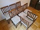 Beskrivelse: 8 Spisebordsstole fra starten af 1900 tallet i eg og med stofbetrukket sæde. Fremstår pæne og stabile uden nævneværdige brugsspor. Passer evt. til armstole nr. 93004