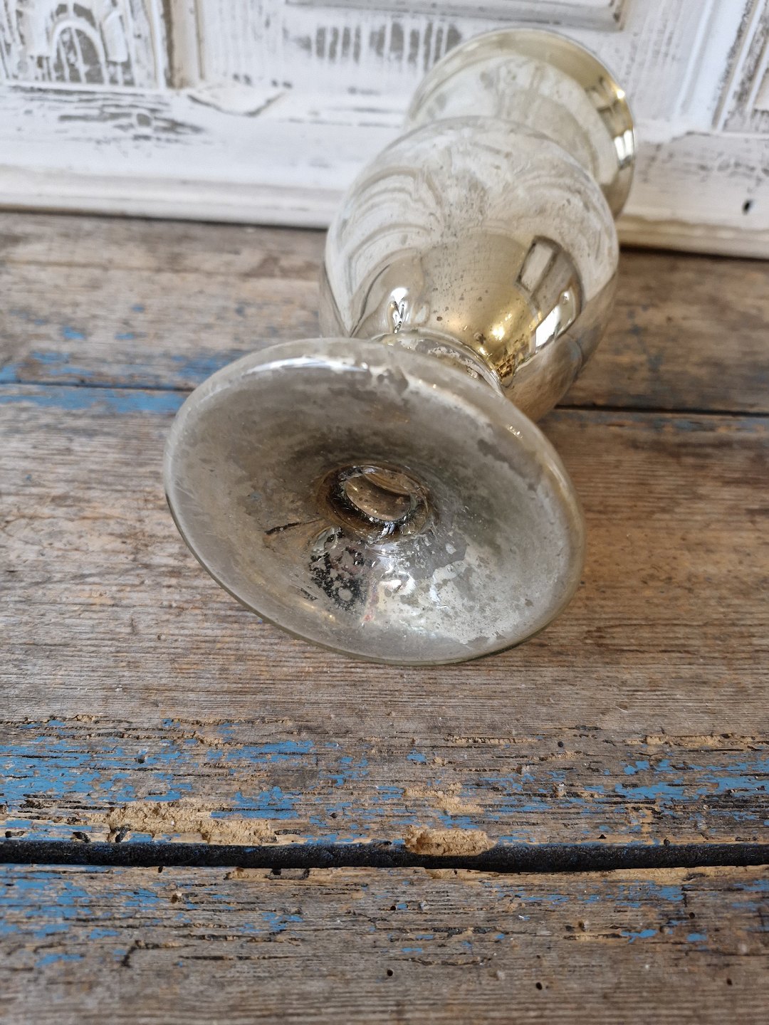 Beskrivelse: 1800 tals vase i fattigmands sølv dekoreret med blade