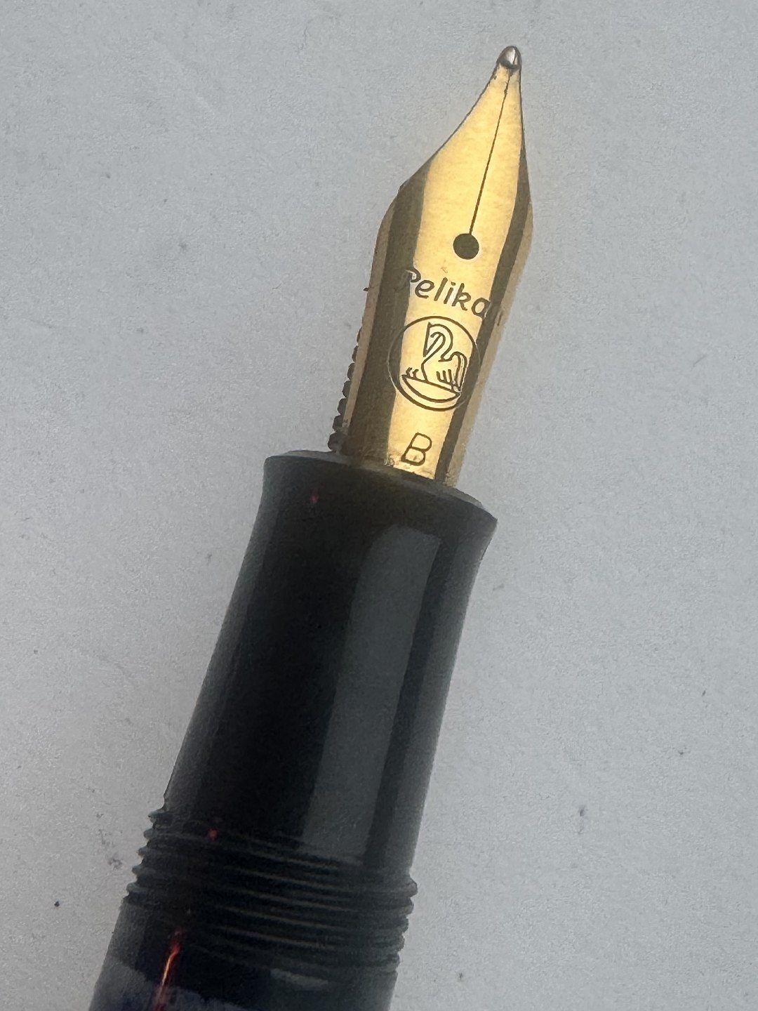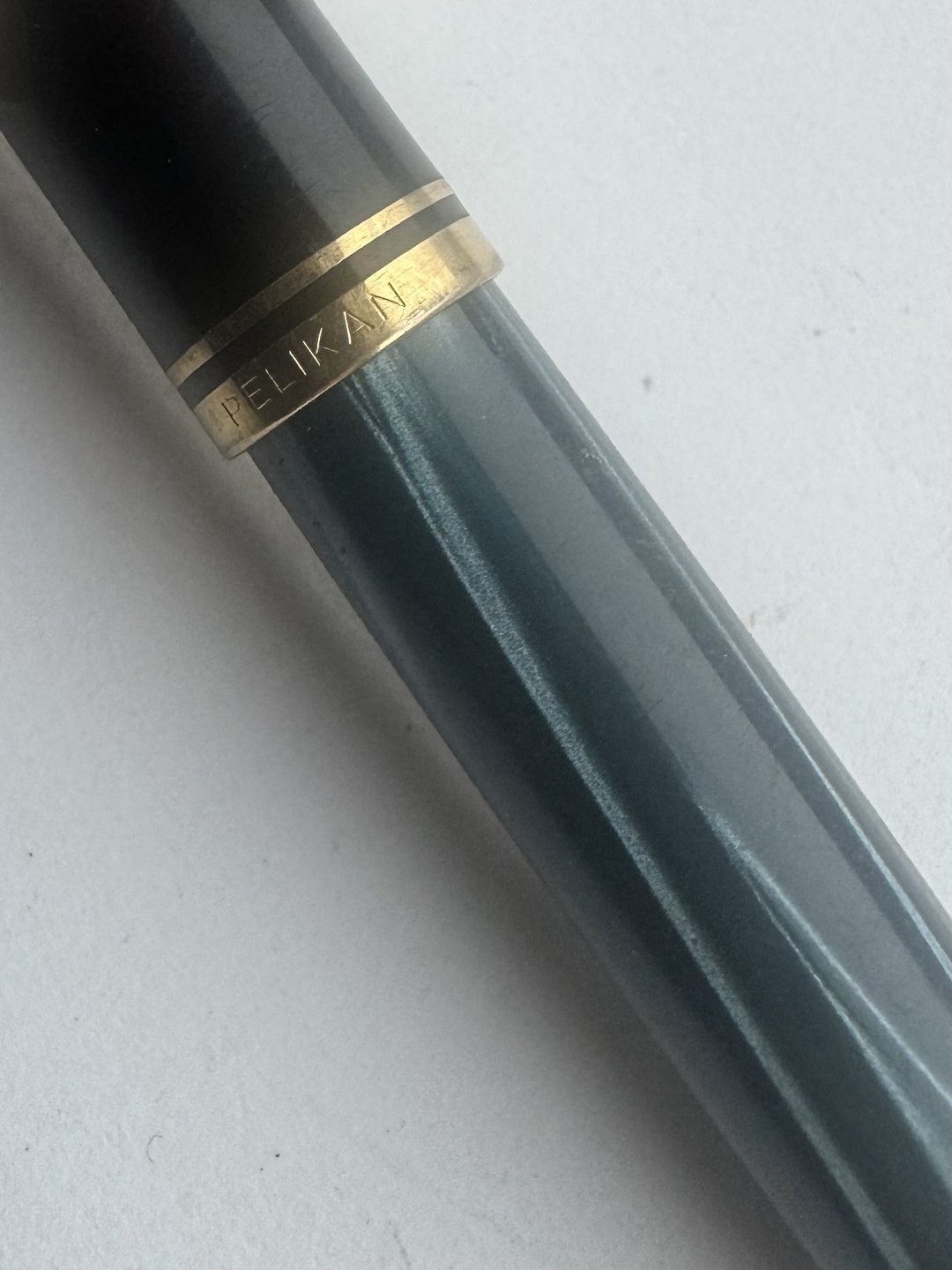Beskrivelse: Pelikan M200 fyldepen. Fremstillet i Vest-Tyskland i 1970’erne. Den lille kapsel med logo på toppen af hætten har en revne (se foto). Eller i god funktionsduelig stand.