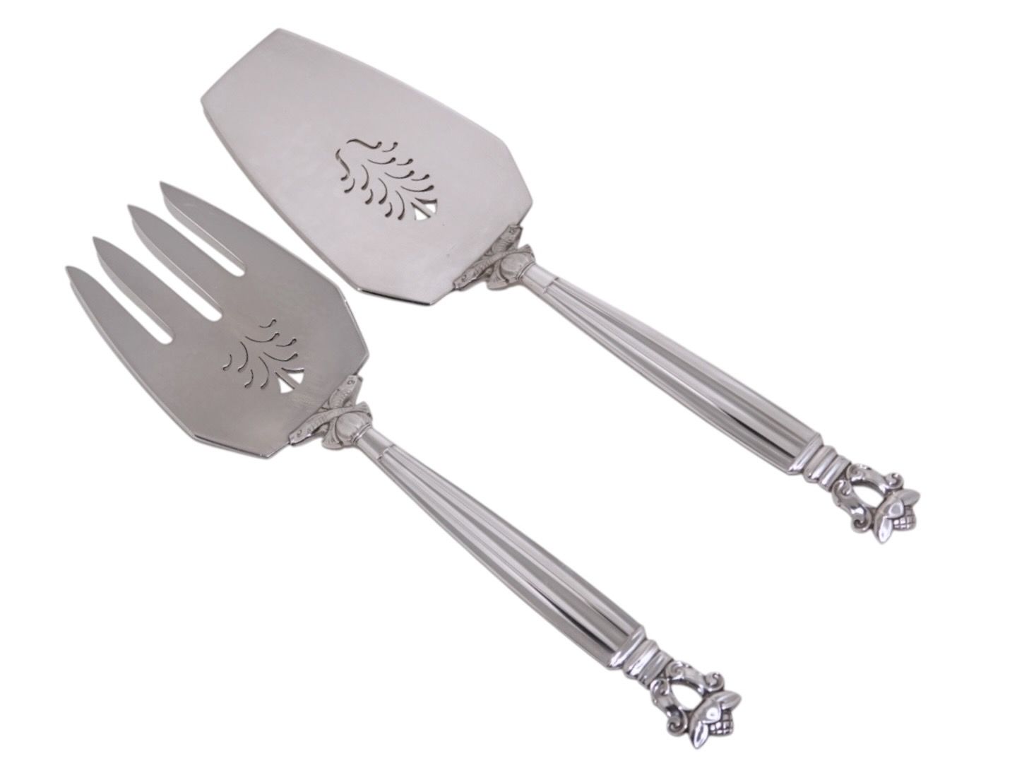 Description: Georg Jensen Acorn silver, large fish serving set.