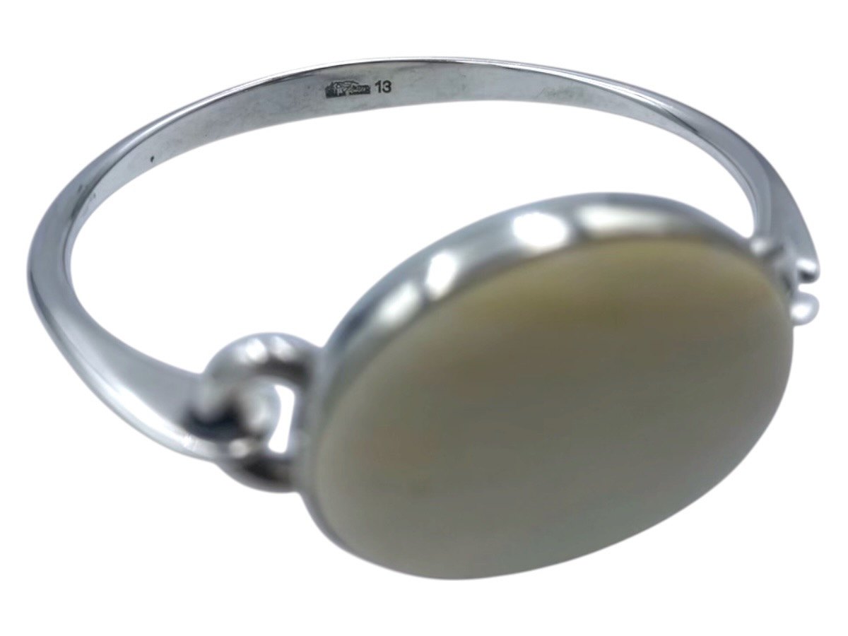 Beskrivelse: Niels Erik From sterlingsølv, moderne moderne armring med stor hvid stykke ben.