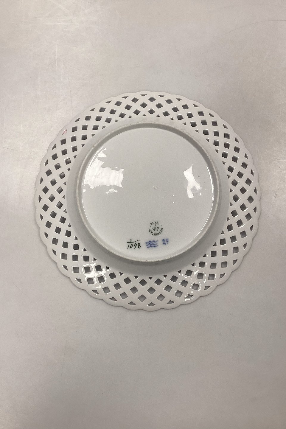 Beskrivelse: Royal Copenhagen Musselmalet Helblonde med gennembrudt kant Flad Tallerken No. 1/1098