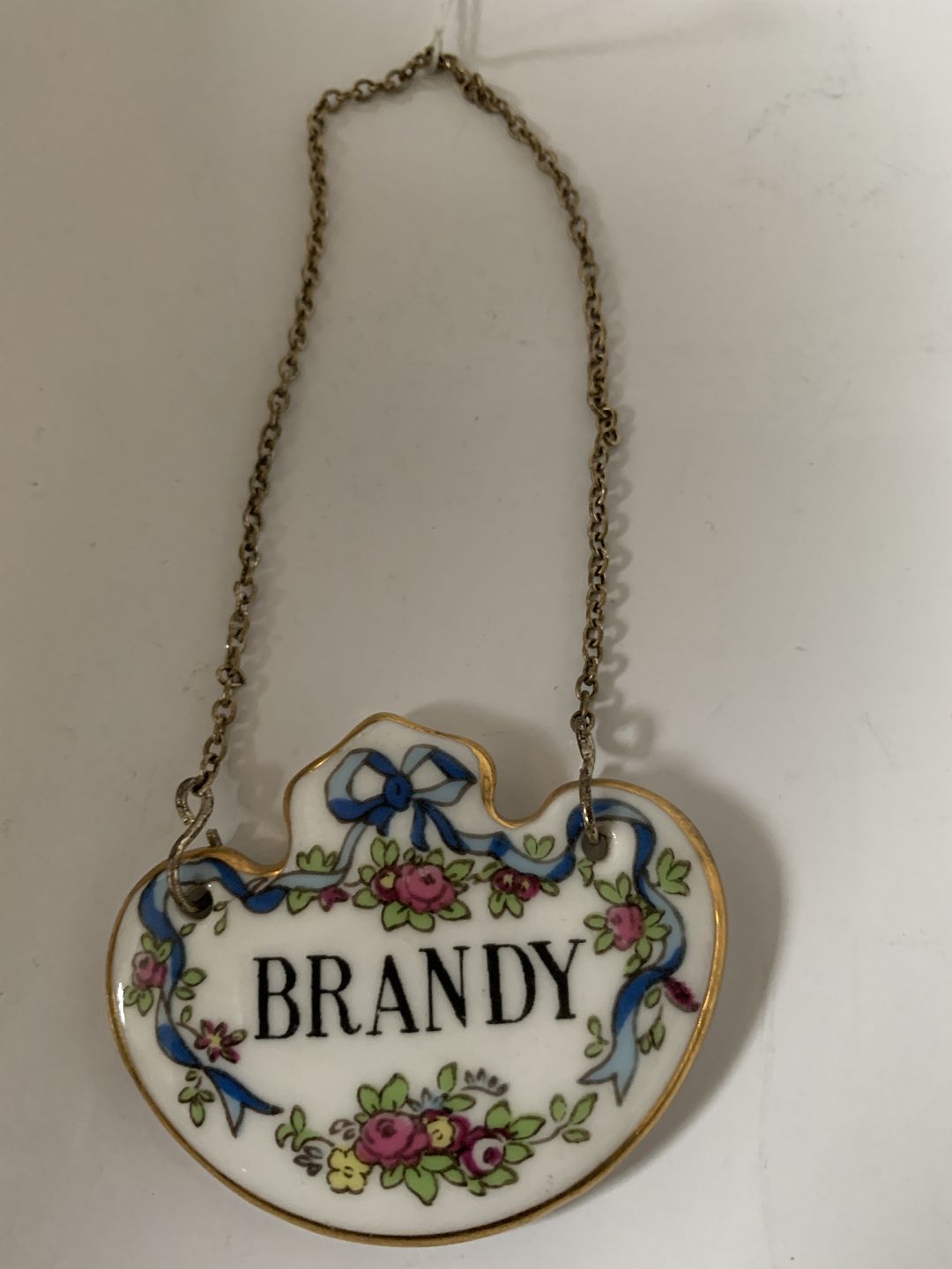 Beskrivelse: Flaske / Karaffel Brandy skilt med kæde