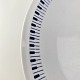 Stellet er fremstillet i ildfast glat porcelæn dekoreret med mørkeblå tangenter på hvid baggrund.