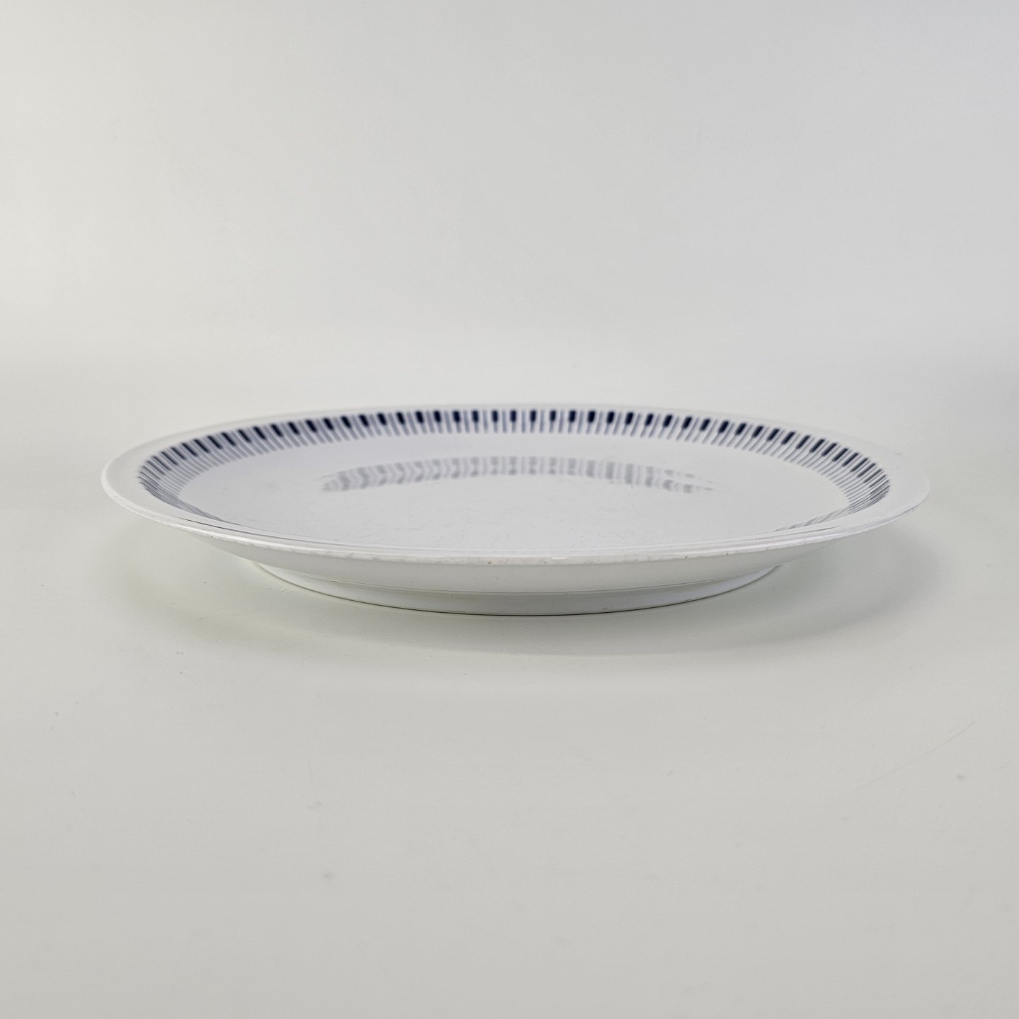 Beskrivelse: Flad middagstallerken i porcelæn fra stellet Danild 64 - også kendt under navnet Tangent