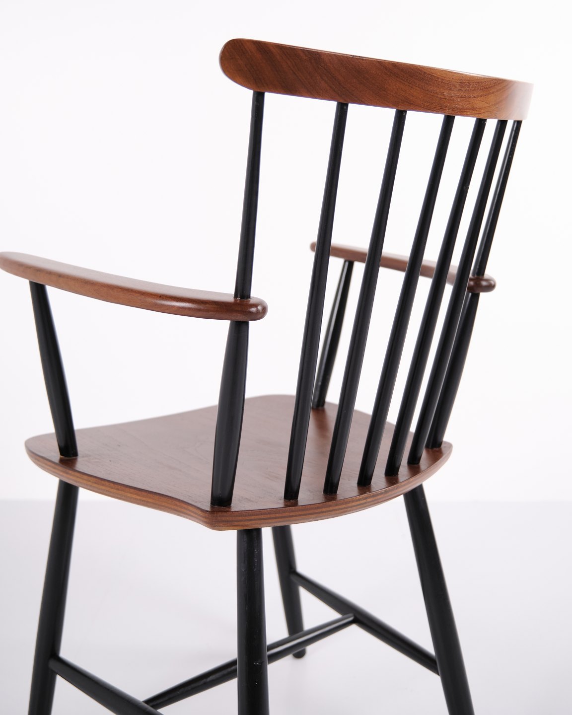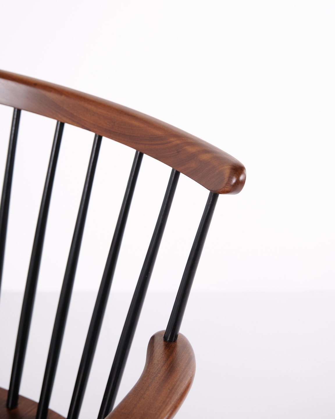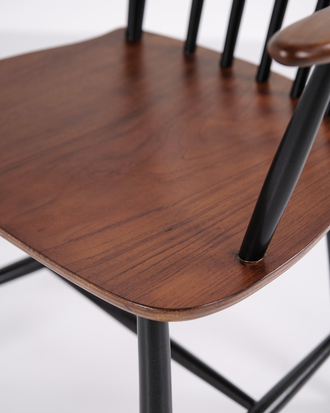 Beskrivelse: Poul M. Volther armstol for Farstrup fra 1960’erne. Palisander med sort bemaling.