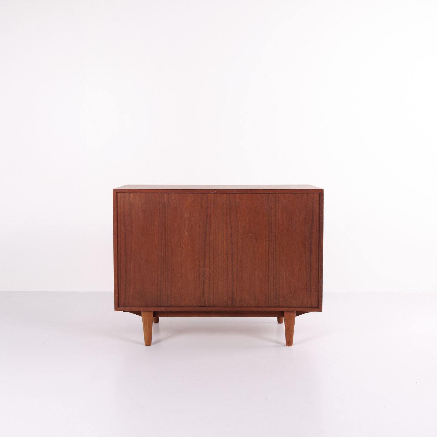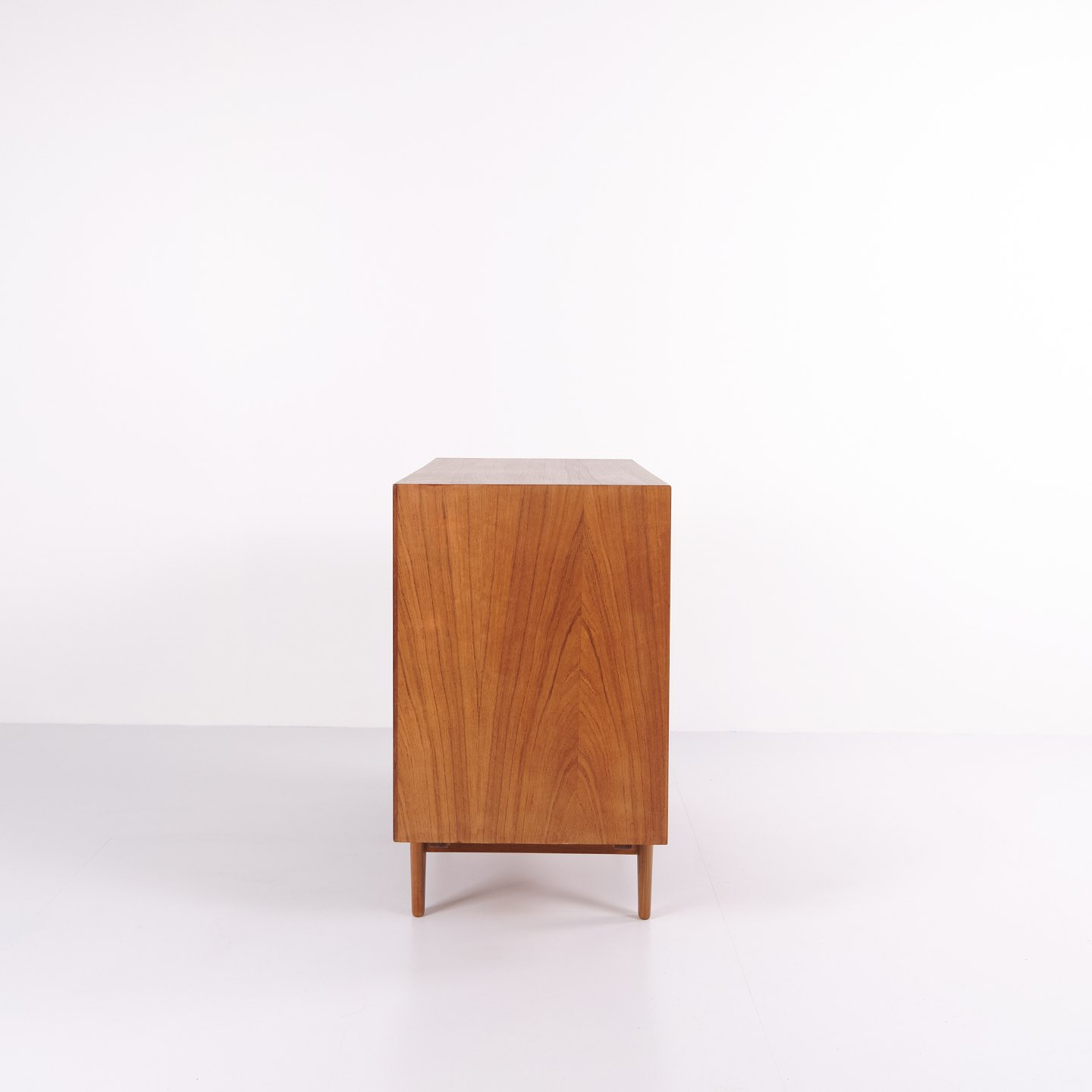 Beskrivelse: Kommode designet af Ib Kofod-Larsen og fremstillet af Brande Møbelfabrik i 1950’erne. Kommoden er udført i teaktræ med fire rummelige skuffer og karakteristiske, enkle greb, som understreger Kofod-Larsens rene og funktionelle formsprog.