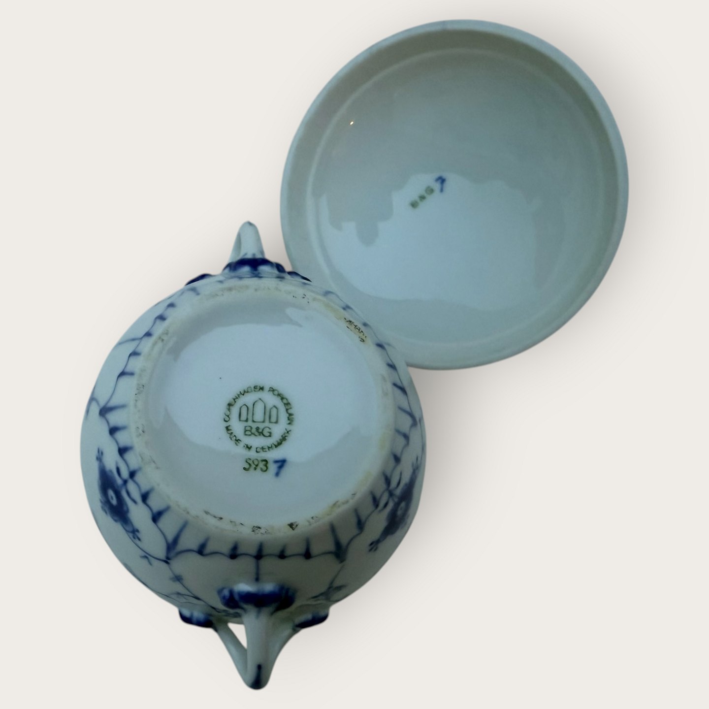 Beskrivelse: Bing & Grøndahl, Blåmalet / Musselmalet, Sukkerskål #593, 12cm bred, 10cm høj, 1.sortering,*Perfekt stand*