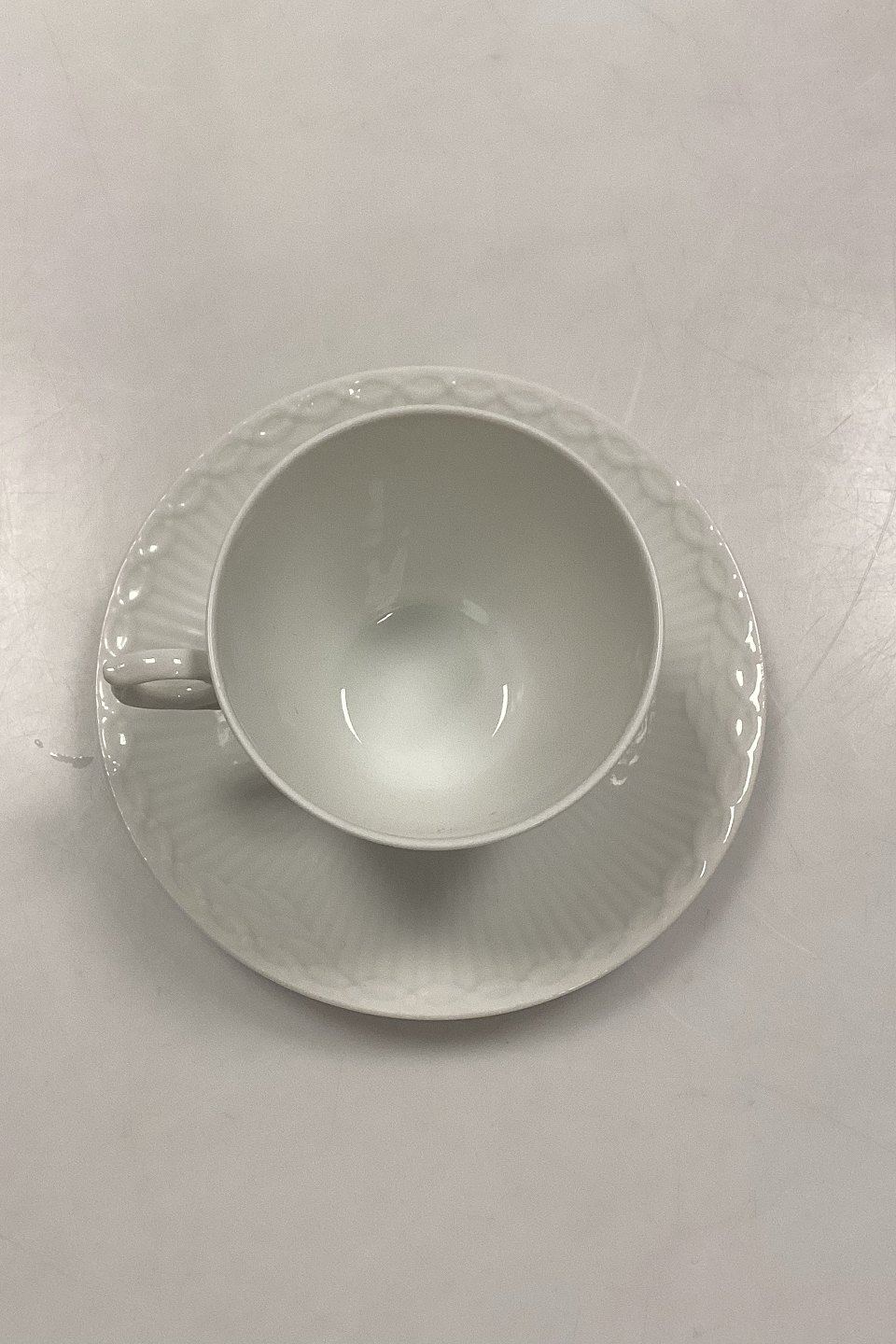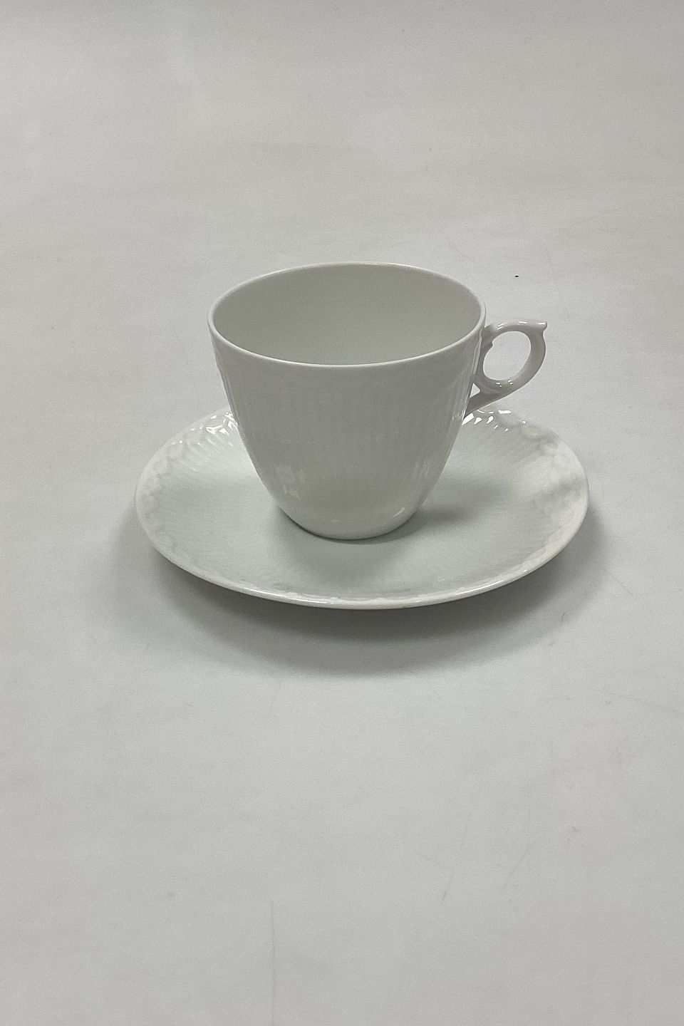 Description: Royal Copenhagen White Half Laced Mocca Cup with Saucer