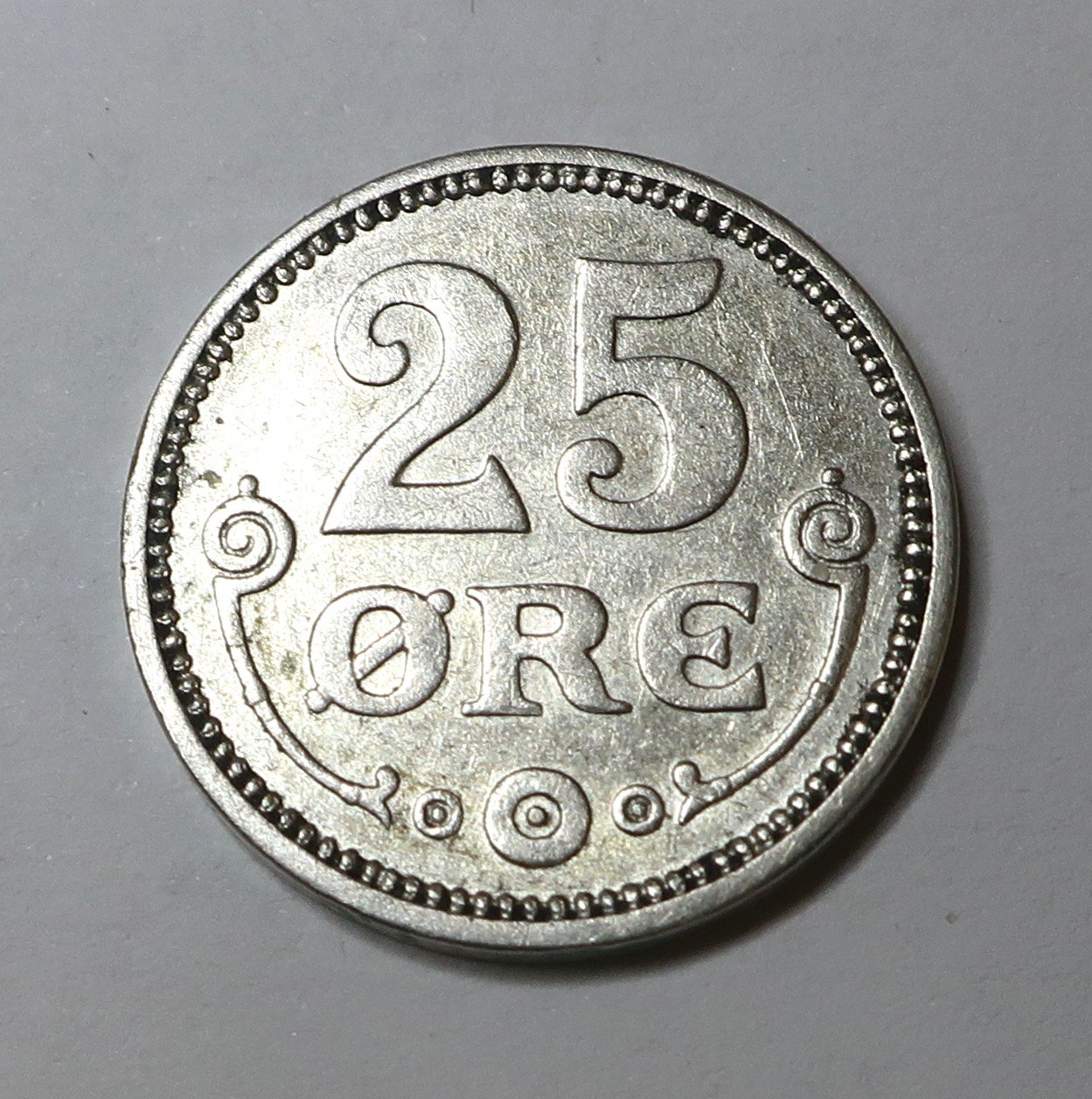 : Danmark. Christian X. Sølv 25 øre fra 1914
