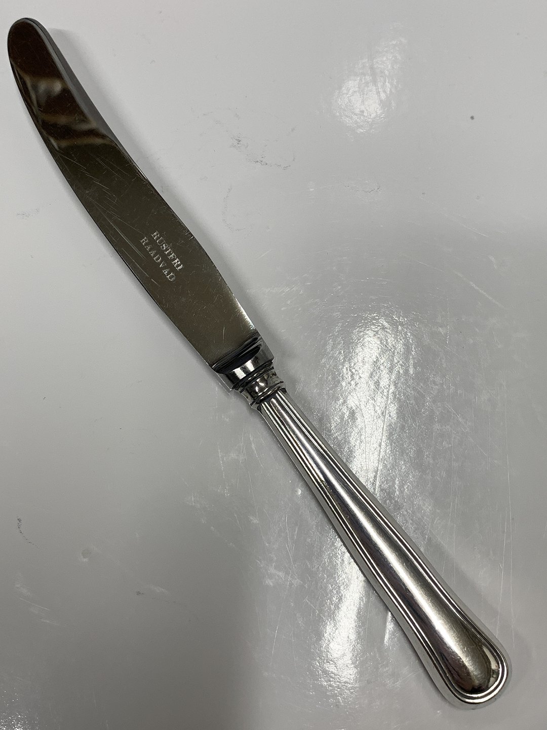 Beskrivelse: Dobbeltriflet Sølv, Dessertkniv / Barnekniv