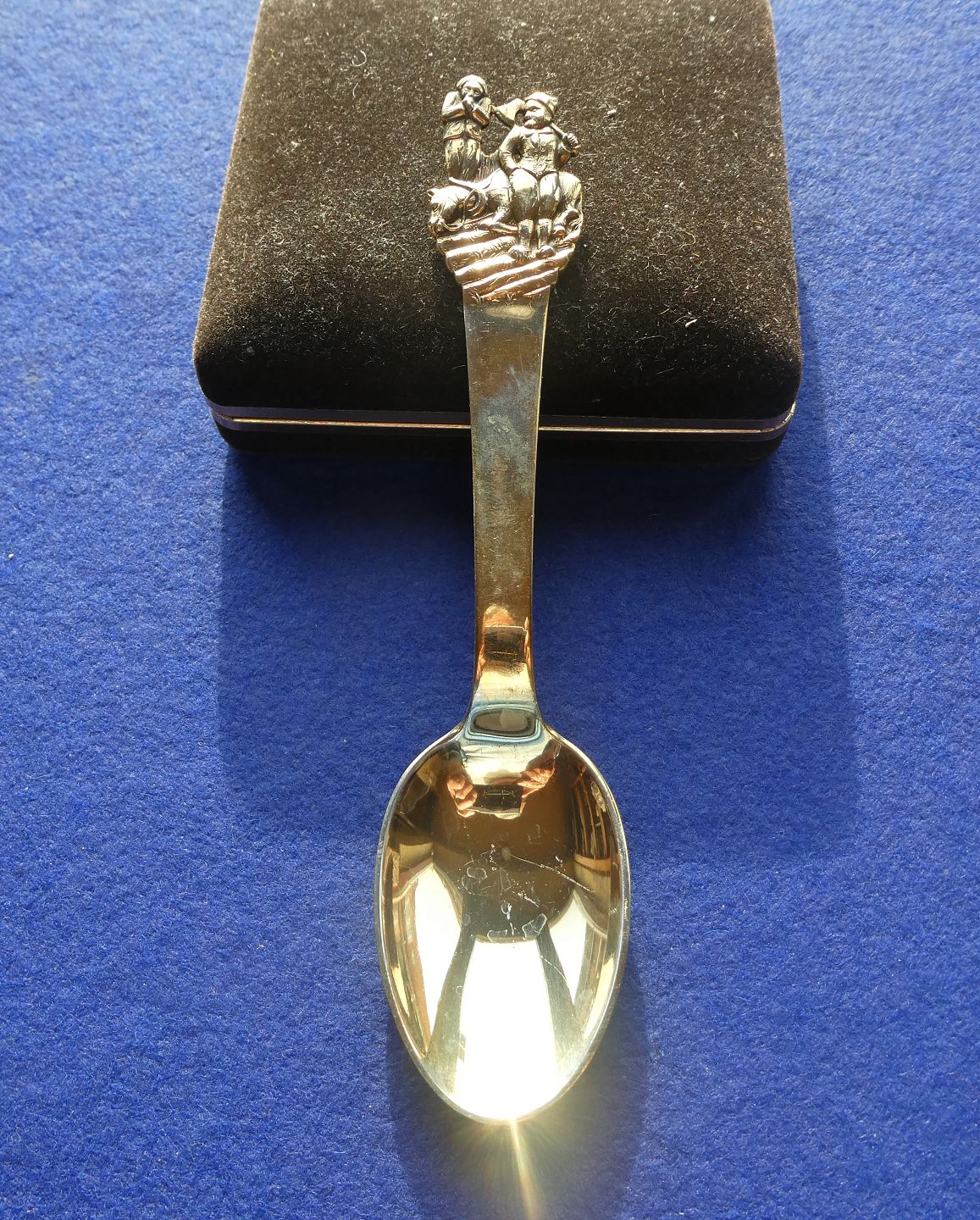 Lille Claus & Store Claus børnebestik i forgyldt sølv. Barneske