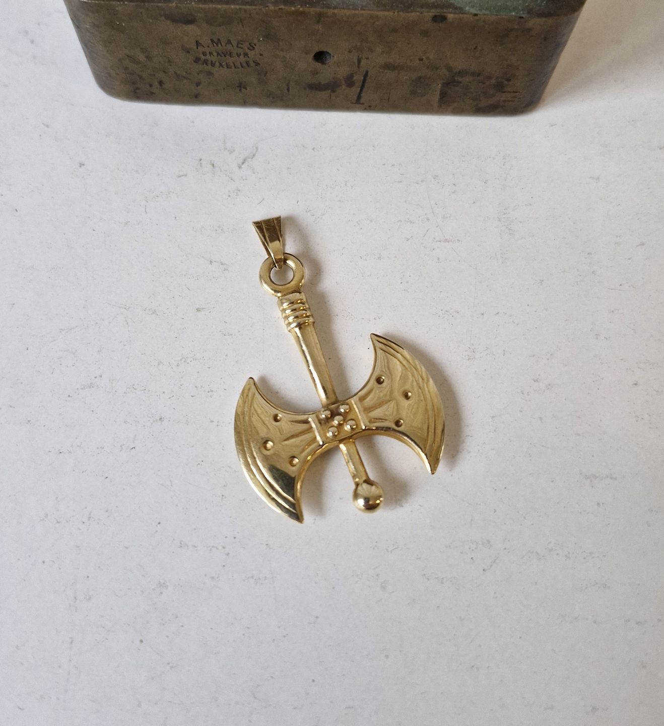 Græsk vedhæng i 14kt guld, udført som dobbeltøkse - Labrys