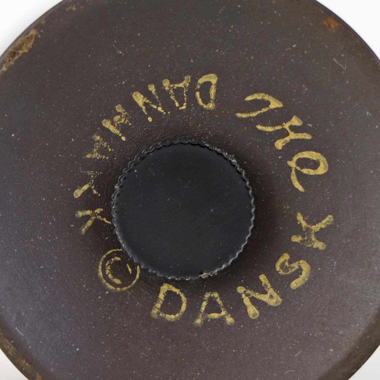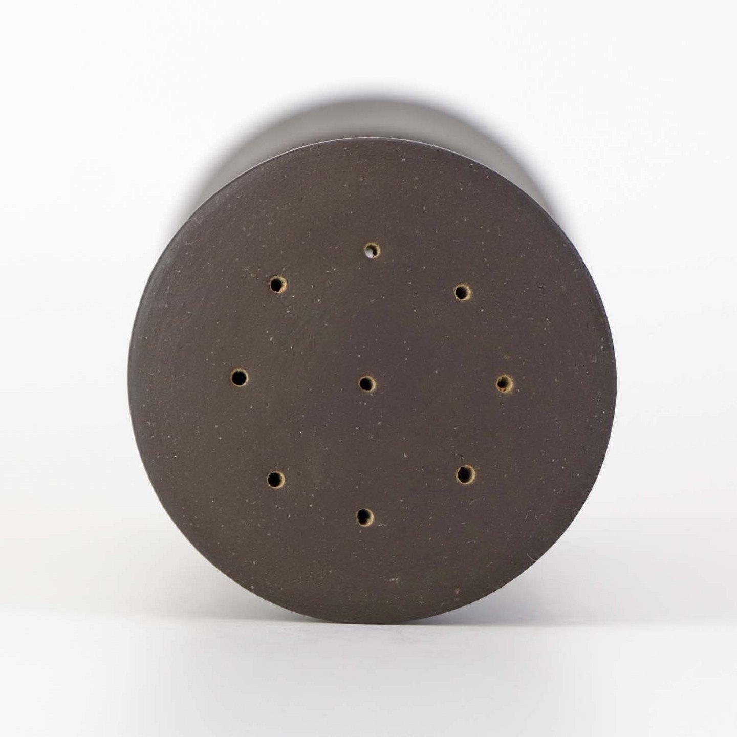 Beskrivelse: Bøsse til peber i stentøj fra stellet Flamestone