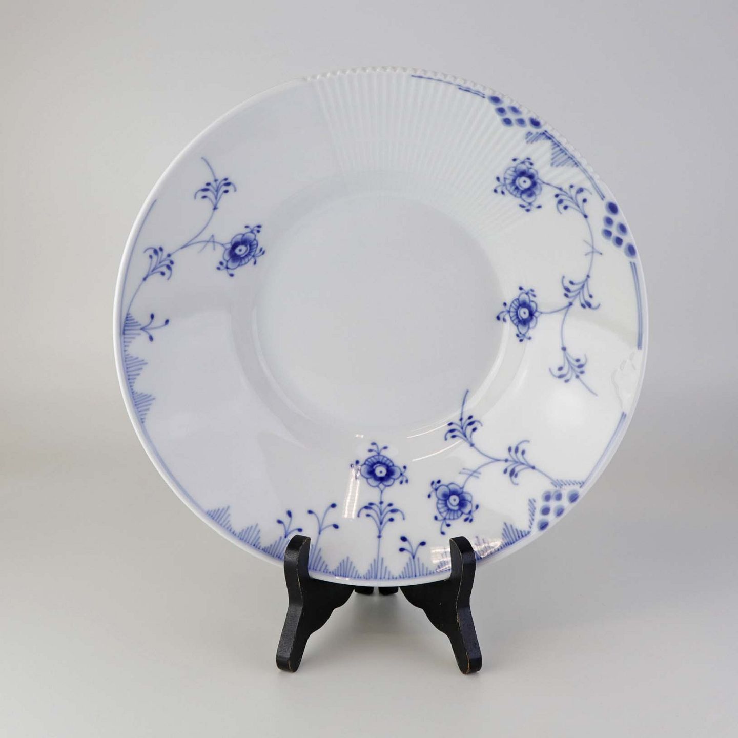 Beskrivelse: Stor dyb tallerken i porcelæn fra stellet Blå Elements. Nr. 604