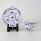 Beskrivelse: Mellemstor kaffekop med underkop i kongeligt porcelæn fra stellet Musselmalet Halvblonde. Nr. 1/719