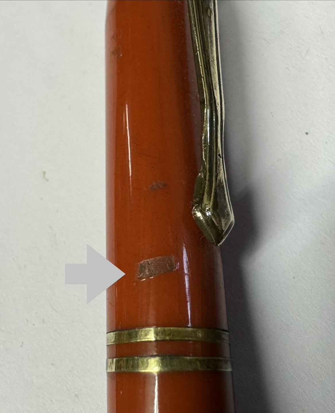 Description: Slim vintage coral red Montblanc 33 mechanical pencil from around 1950. In fine condition with no damage. Small scratch (see the photo with greyhound arrow). Ready to use. 12.8 cm
