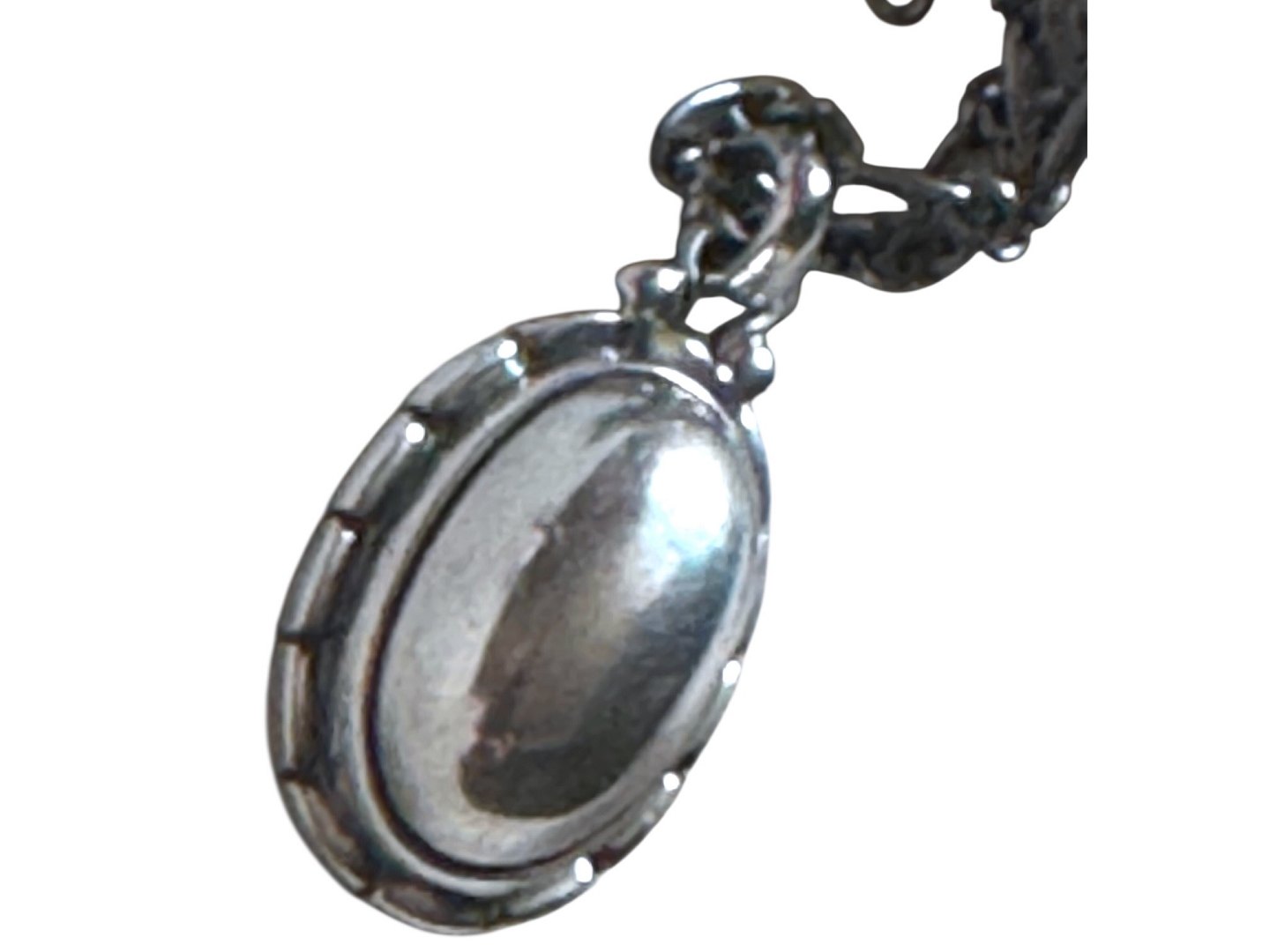Vedhænget måler 2,5 x 1,5 cm. og kæden måler 43,0 cm.