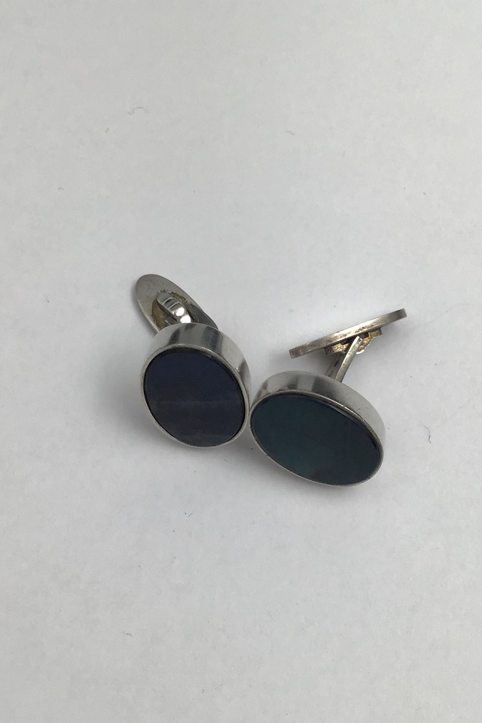 Beskrivelse: Georg Jensen Sterling Sølv Manchetknapper No. A26 (Labradorit)